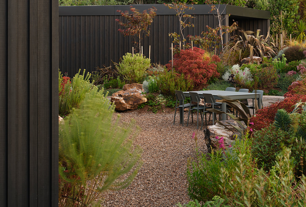 Architecture and interior design by Elmore Booth. Build by GB Carpentry. Landscape design by Xanthe White Design. Selected furniture by Tim Webber
