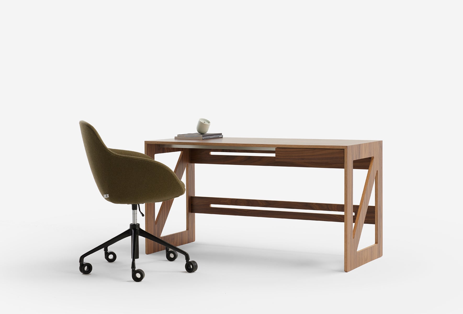 The Stark design is a solid, minimal desk which features a great work top surface and a slimline drawer to neatly tuck away stationary and office accessories. Constructed from 18mm HPL Birch plywood with a steel support under the desk top.