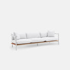 the Kin Outdoor Sofa will be the perfect place for you to rest your feet over a long summer. Varied foam grades and textured fabrics on the Kin Sofa provides uncompromised softness and comfort, unexpected from traditional outdoor seating. A stainless steel frame wraps around the perimeter of the sofa, meeting a perforated sheet across the back, and ending at a cross junction at the front of the arm.