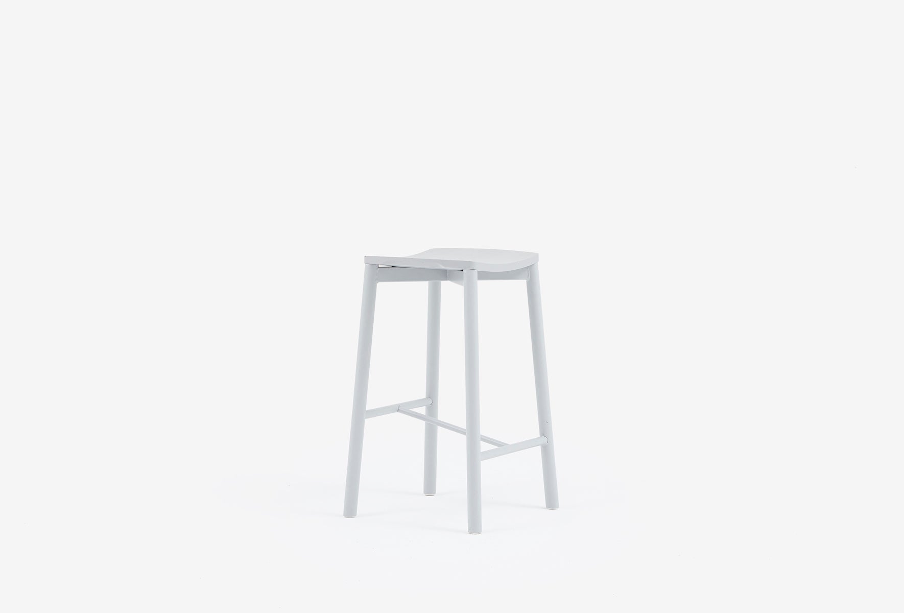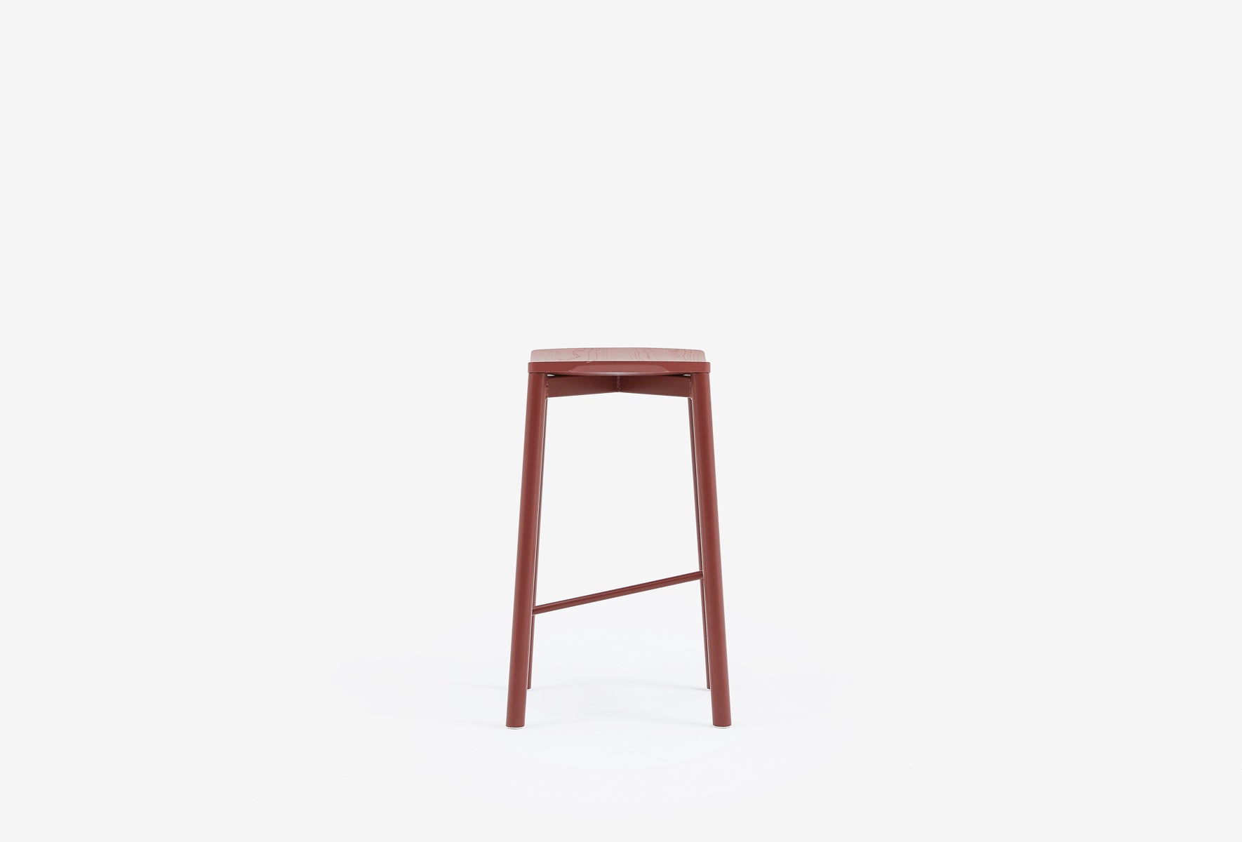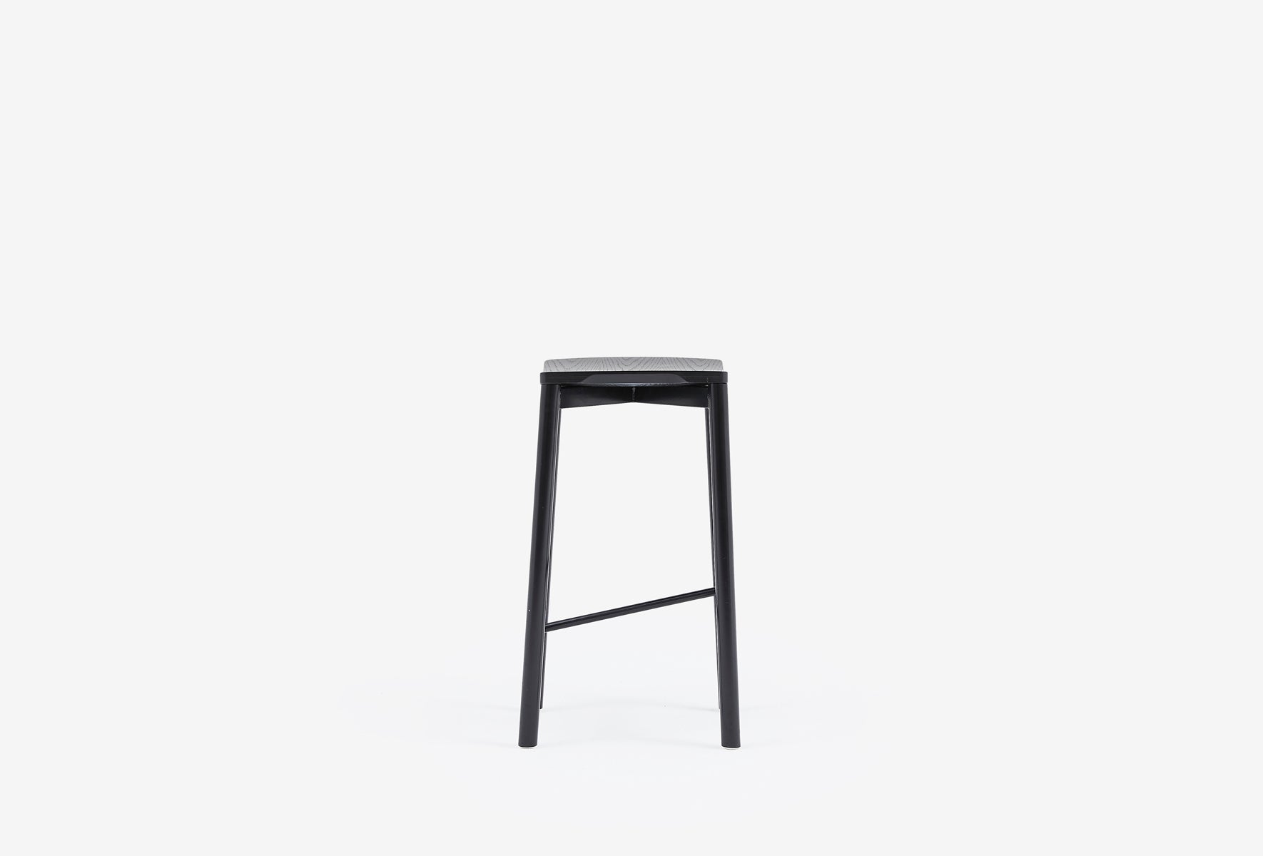 The Nixon Stool's frame is constructed in powder coated steel and the bent plywood seat has comfortable hand holds for ease of movement.