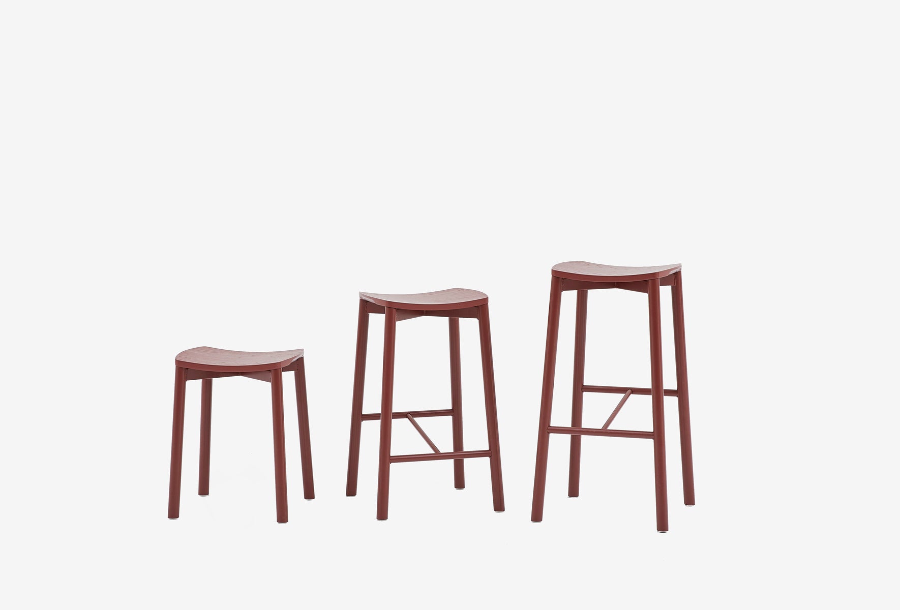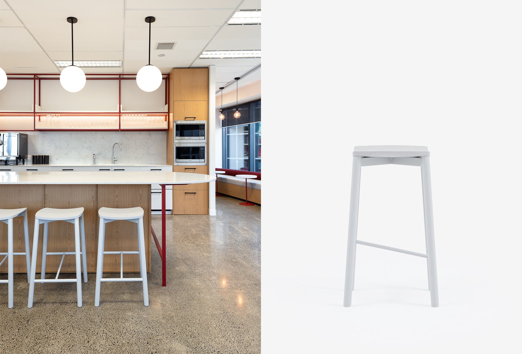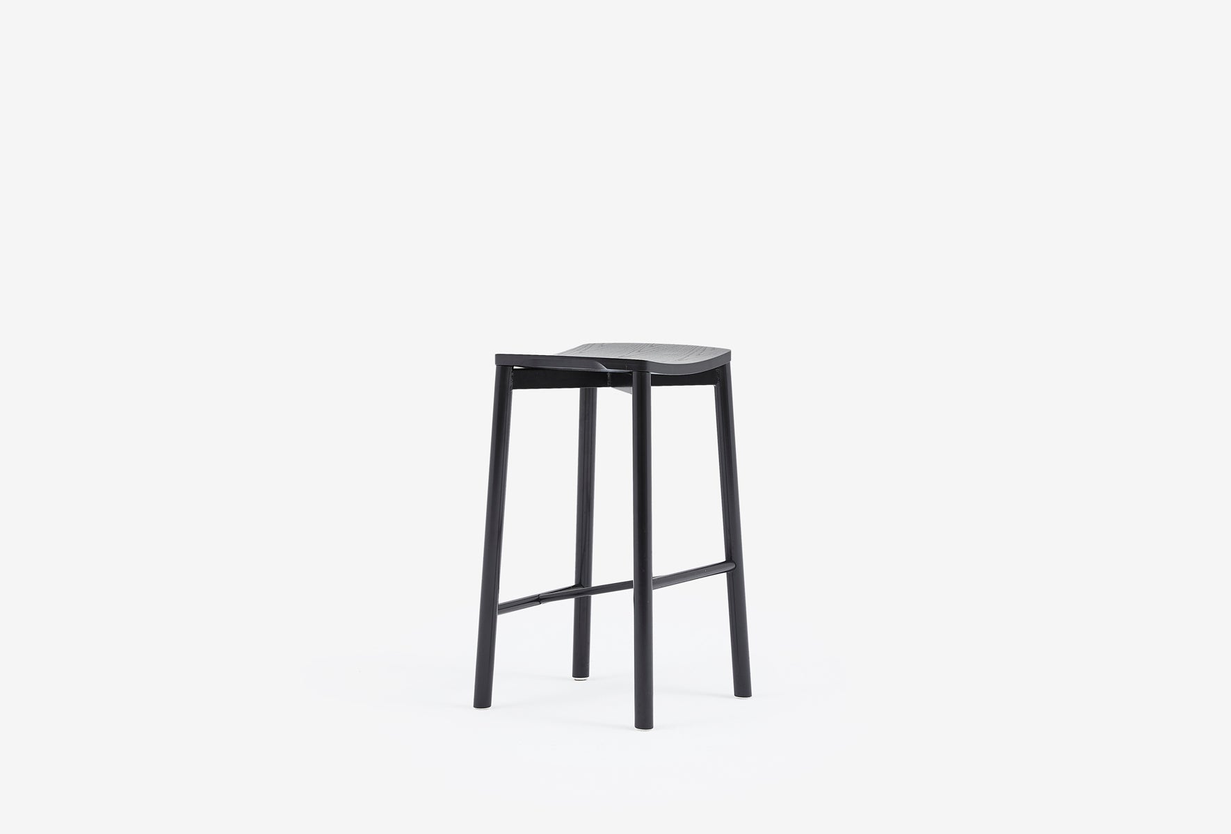 The Nixon Stool's frame is constructed in powder coated steel and the bent plywood seat has comfortable hand holds for ease of movement.