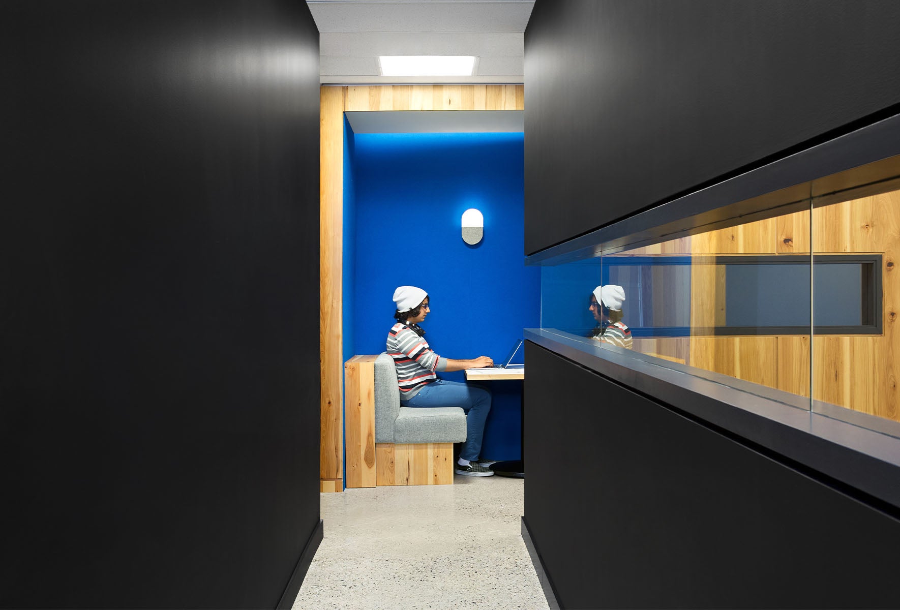 The fixture can be mounted traditionally as an up light and down light or anywhere in between. The fixture was designed to have a large sound-absorbing face contrasted by its minimal 15mm thick edge and low profile off the wall (ADA compliant).