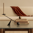 The Interconnect Candle Holder is designed for Audo by Colin King. As a source of cosy candlelight, it is characterised by its deceptively simple geometric form: a sphere, an angle and a line, which unite to create a unique design.