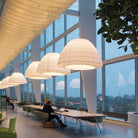Despite its important volume, the soft lines and the lightness of the fabric make Bell a lamp that does not burden the environment. Thanks to its chromatic and dimensional variations, Bell fits different styles and projects, personalising any space. Bell brings together an important aesthetic identity, excellent lighting performance and acoustic properties in one. Its pongé fabric, in fact, thanks to its texture, is both flame-retardant and acoustic. Its Equivalent Sound Absorbing Area up to 4.63, allows Bell to reduce the noise as far as 59%.