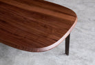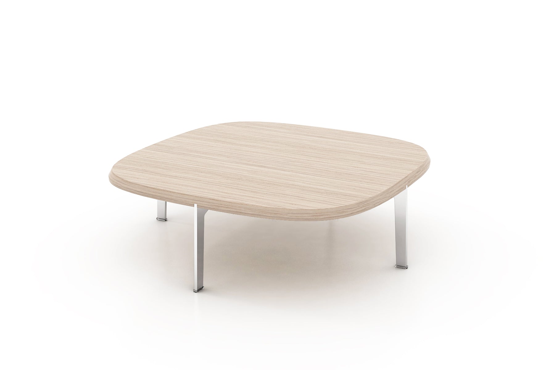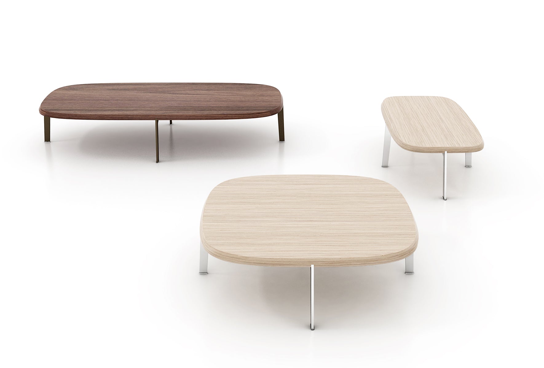 A solid wood coffee table available in three sizes to compliment any space. The Area has pleasing rounded curves and a beveled edge top available in walnut or oak. The legs are offered in chrome or bronzato metal finish.