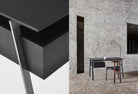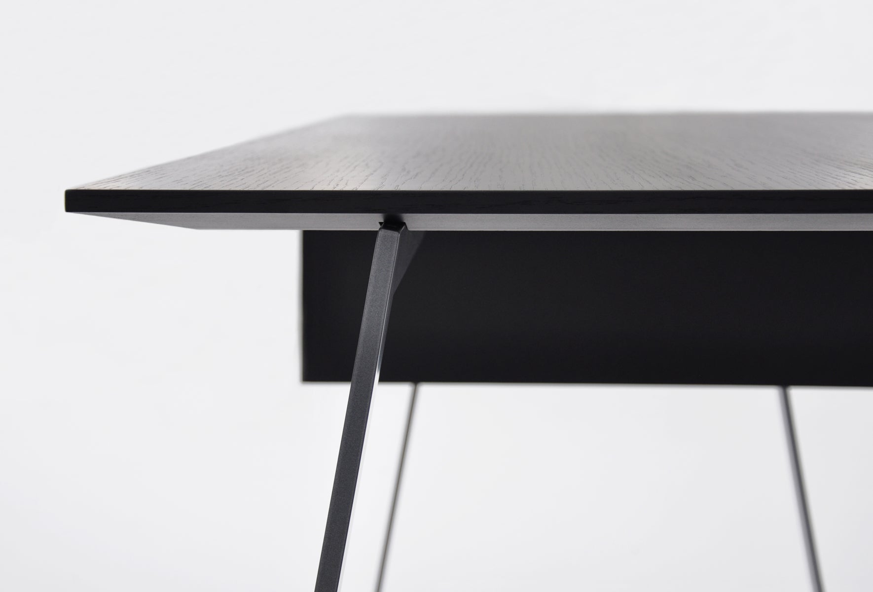 Single or double drawers are available and can be configured to either side of the desk according to individual needs. An innovative construction method allows the drawers to float below the top giving visual lightness to the design while offering rigidity to the construction. The drawers include integrated cable management compartments large enough to neatly organise multiple cables and accessories.