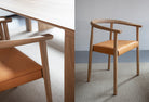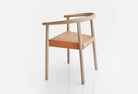 Solid wood with a removable saddle leather seat, the Tokyo chair features a continuous ribbon of shaped solid wood which creates the distinctive back and connects to the legs with traditional mortise and tenon construction. The finish is an advanced low build water-based polyurethane that gives the wood a natural open-grain appearance which is both smooth to touch yet very durable. The saddle leather seat is expertly cut, sewn and applied to a multi-layered seat structure to ensure a perfect fit for many years to come.