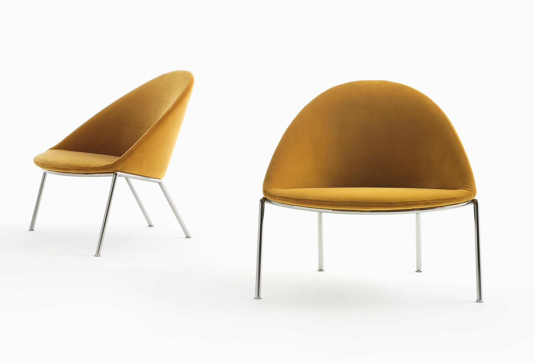 Available with armrest or as a highback variant. This chair also has a selection of metal finish options, from chromed, black nickel, bronzato and graphite.
