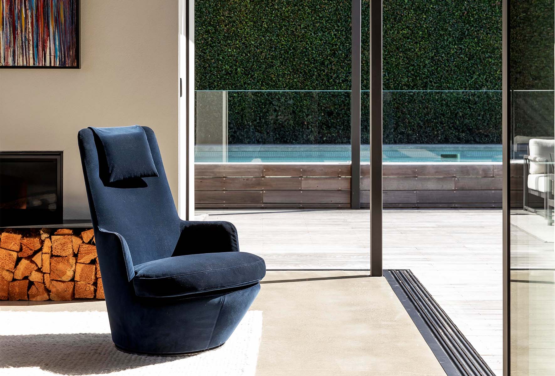 The combination of an internal steel frame, injection moulded cold foam and a soft down seat make for an inviting and comfortable chair with a tailored appearance. All fabric covers are removable for easy cleaning or replacement.