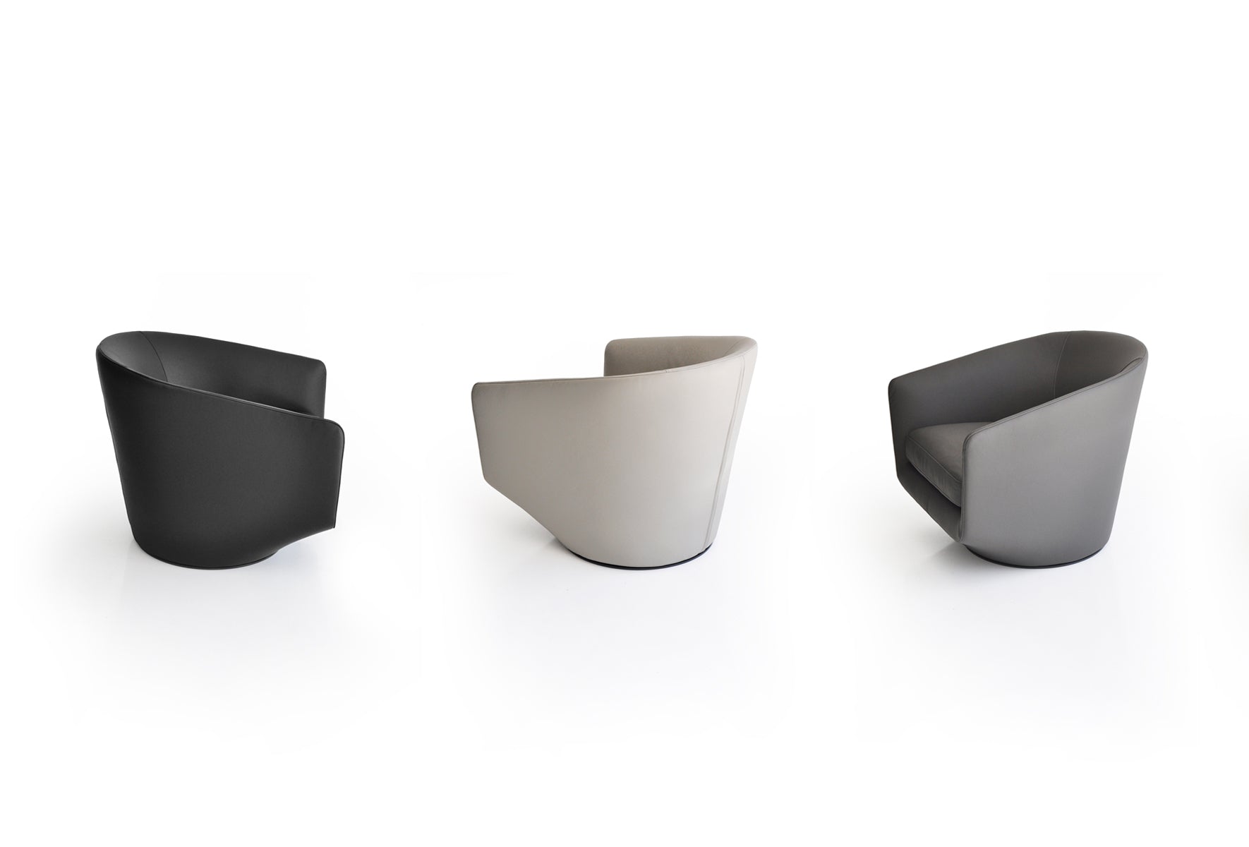 U Turn sits upon a discrete circular metal base that rotates smoothly through 360º. An internal steel frame and injection moulded foam create engineered comfort and a tailored appearance.