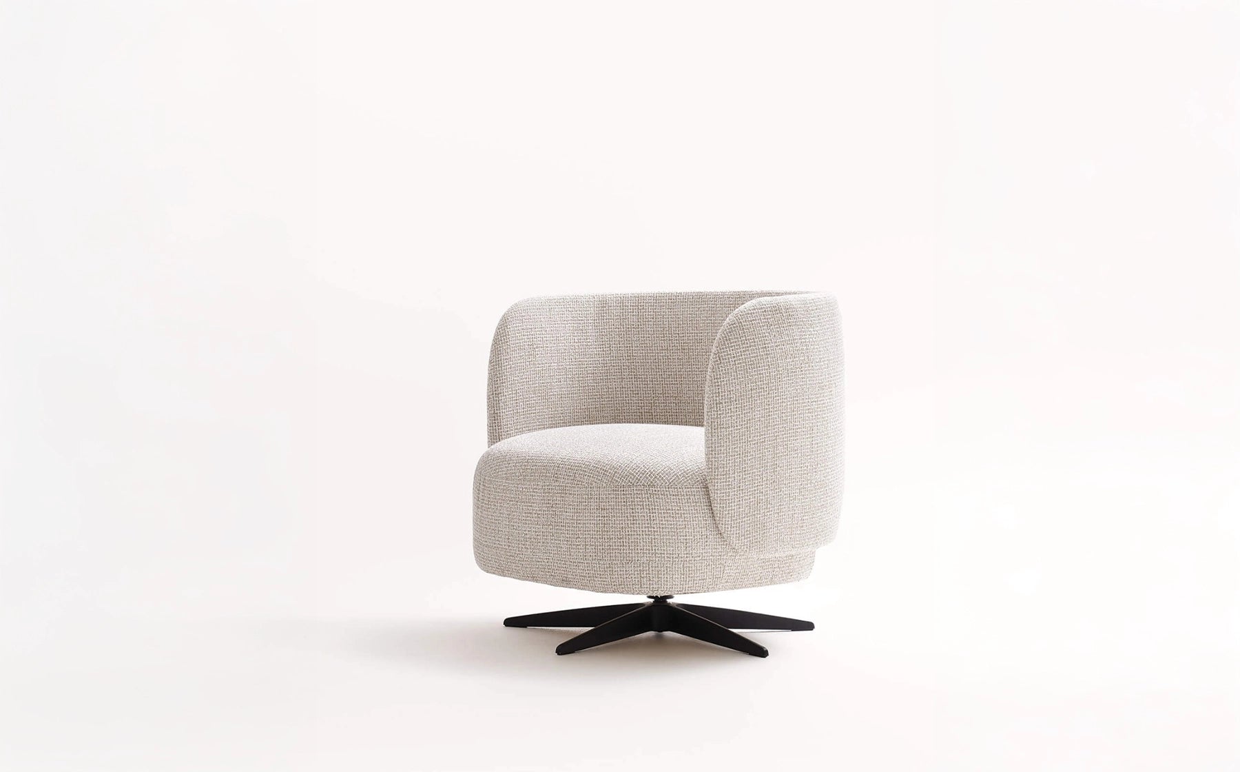 Defined by its compact footprint, high backrest, and striking swivel base in die-cast aluminium, the Miki armchair introduces both visual impact and practical versatility. Its 360° swivel mechanism adds movement and adaptability, making it ideal for lounges, reading corners, or contemporary workspaces.