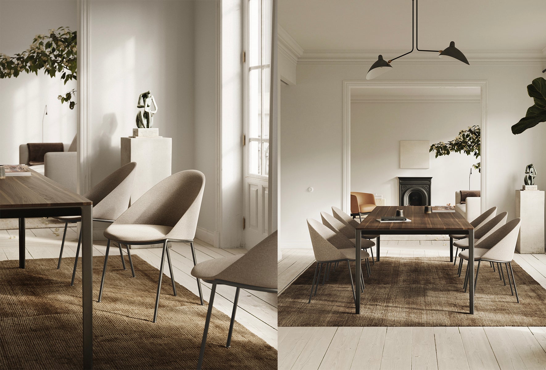 This design is perfect for using at a dining table or even a desk, with the curled backrest you can be supported for hours at a dinner party or working while the receding sides mean you can still tuck these chairs in when not in use. With plenty of options in fabrics, leathers and metal finishes, the Circa chair can be custom ordered to fit any interior design aesthetic.