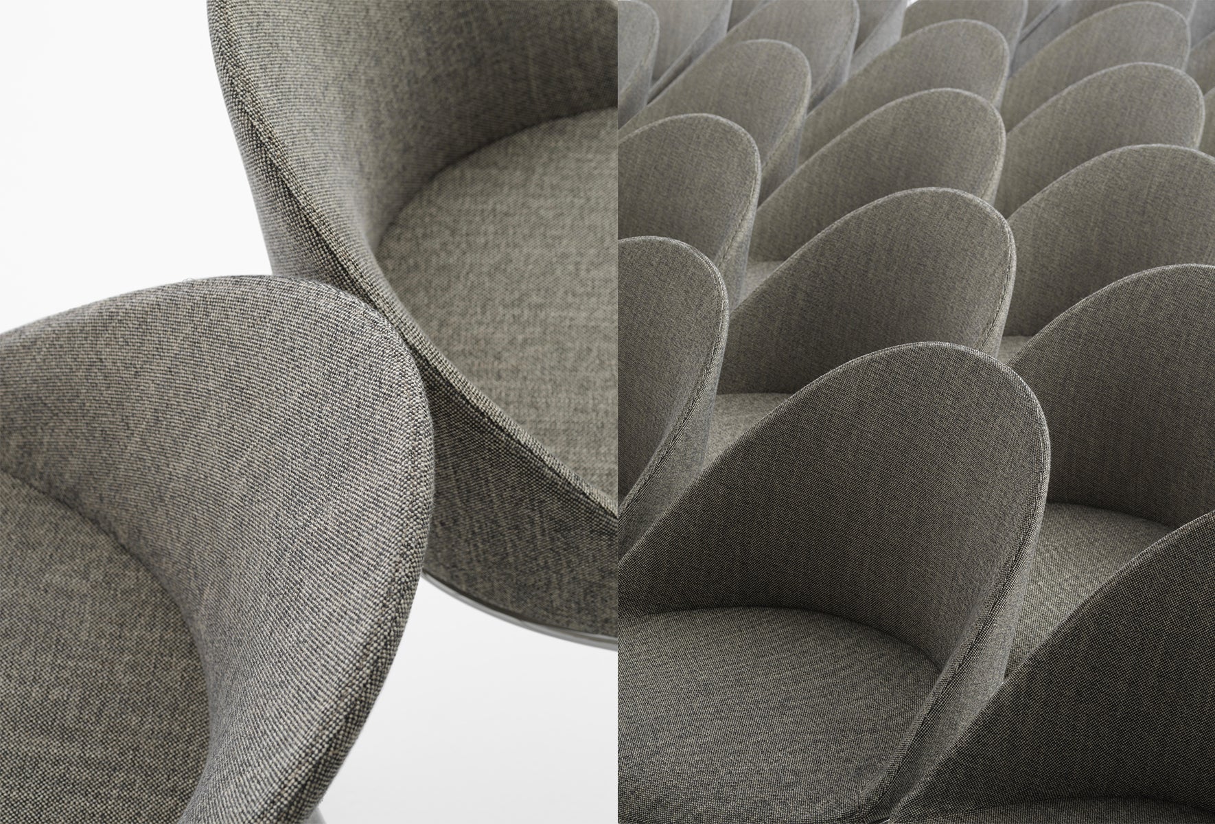 Flexible polyurethane body with structural metal frame. Elastic webbing integrated seat cushion. Metal base: Plated, brushed or powder-coated finish