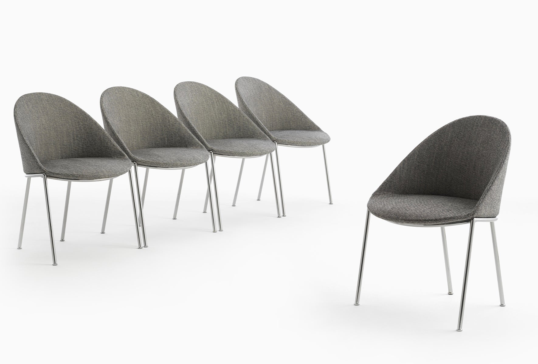 Available either with standard four legged option, or with a sled base. This chair also has a selection of metal finish options, from chromed, black nickel, bronzato and graphite.