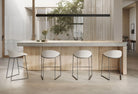 This design is perfect for using at a kitchen island counter, drinks bar, or even an office bar leaner. With plenty of options in fabrics, leathers and metal finishes, the Circa Stool can be custom ordered to fit any interior design aesthetic.