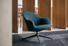 This version of the Circa Chair has a lower more relaxed seat height with several options for armrests and extended high-back headrest.With plenty of options in fabrics, leathers and metal finishes, the Circa swivel chair can be custom ordered to fit any interior design aesthetic.