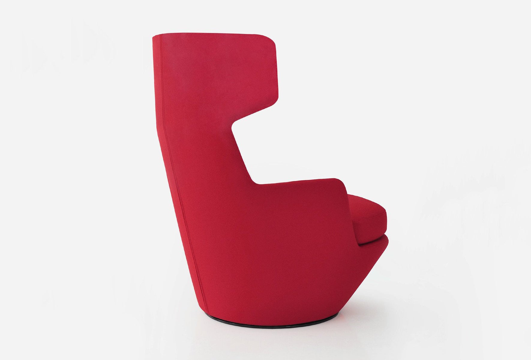 My Turn is a high wingback swivel lounge chair with a metal base that rotates smoothly through 360º. Available with or without self-return mechanism.