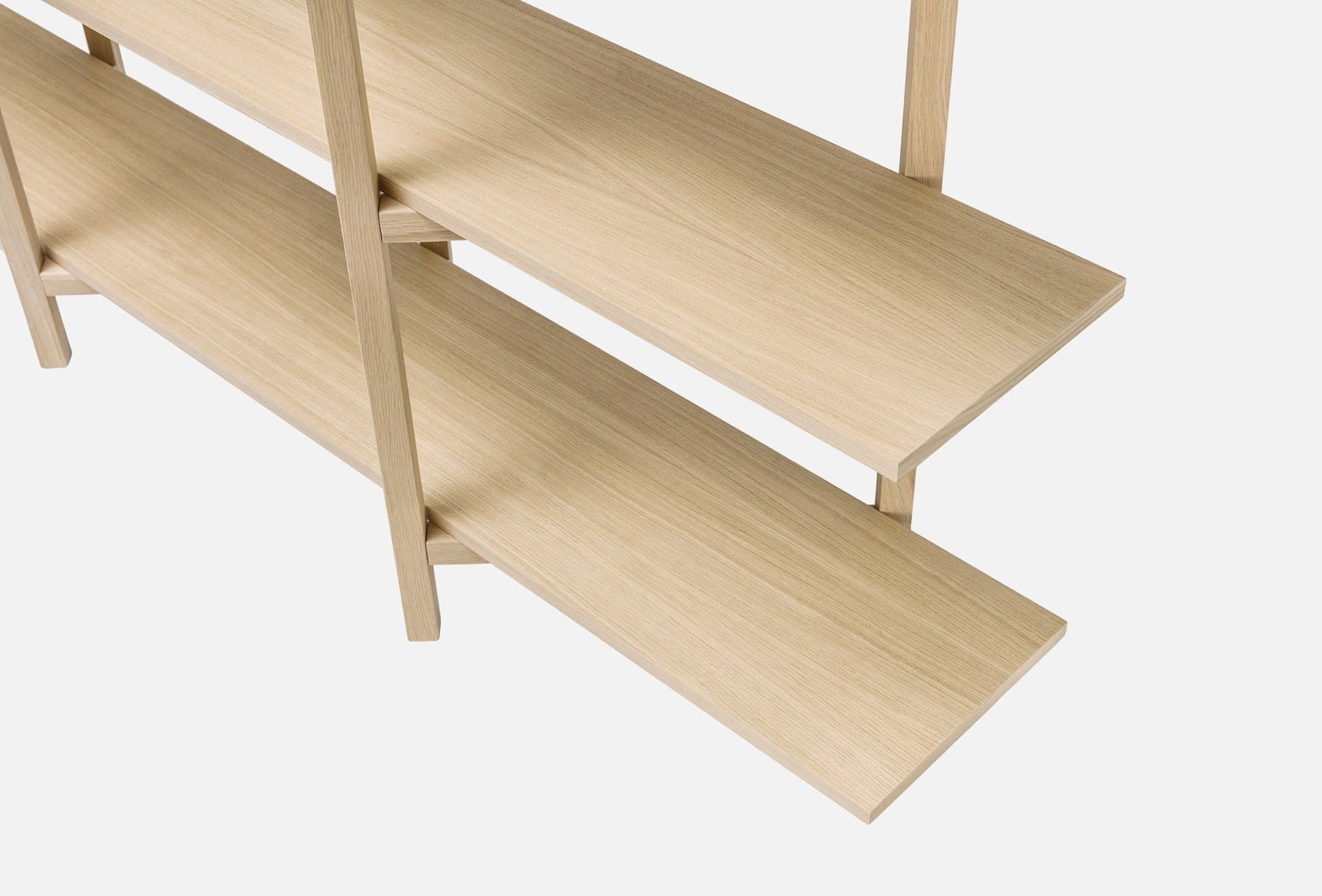 Designed by Studio deFORM, 'Zigzag Shelf' is made from high quality timber. The clear-cut and screwless Zig Zag Shelf is all about pure function and simplicity. Inspired by the modern city dweller, the shelf is available in two sizes and is delivered in a flat package, easily assembled without the need for tools.
