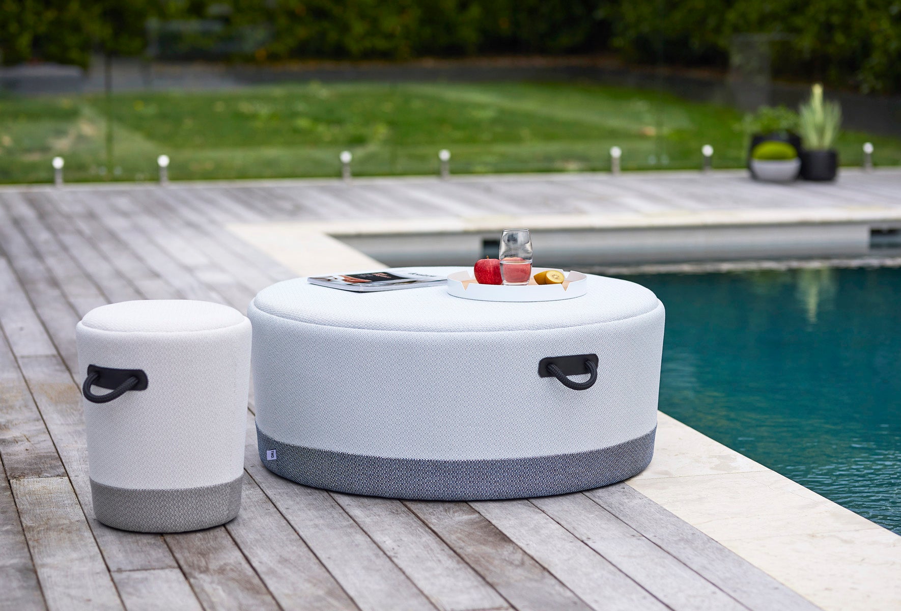 The Outdoor Duffel Stool is a variant of the classic Duffel Stool, now available in a strong, durable outdoor fabric. The Mokum fabric range is fade-resistant, water-resistant and spot-cleanable, allowing for outdoor designs that are easy to care for and maintain.
