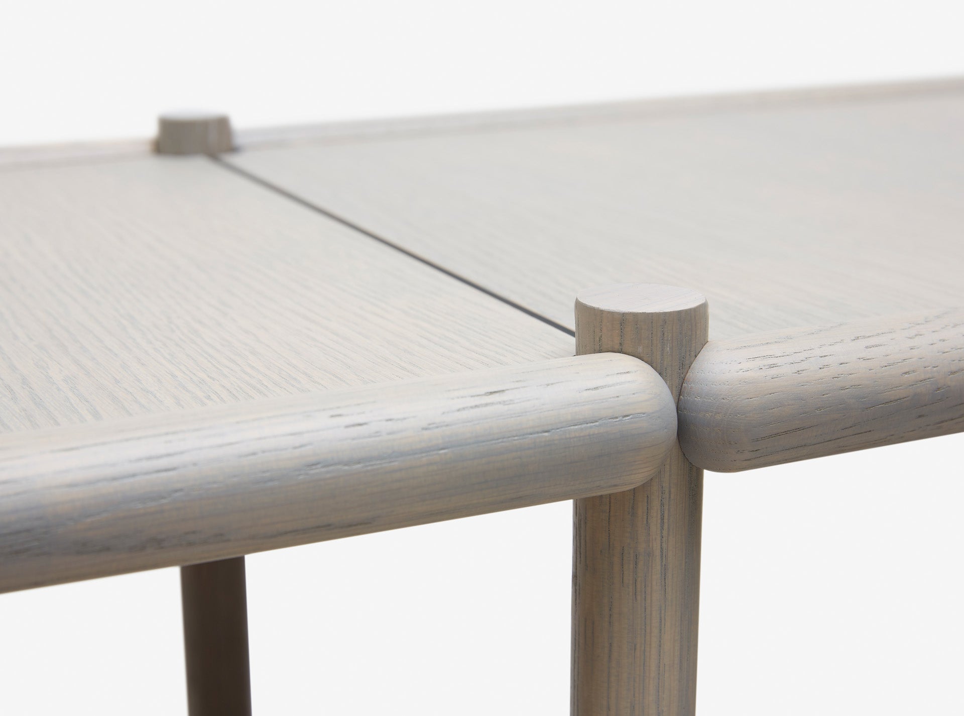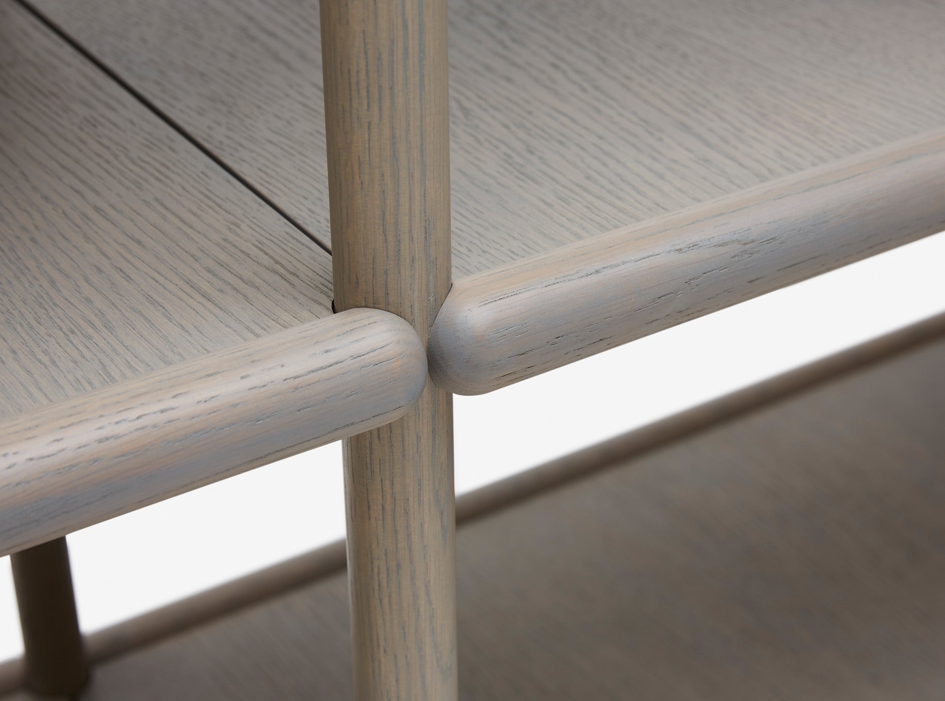 The Raft Shelving System is a design which concentrates on beautiful details. The way the hand turned timber dowel on the front and back of the shelf marries with the dowel upright creates a join which is carefully considered, functional and strong.
