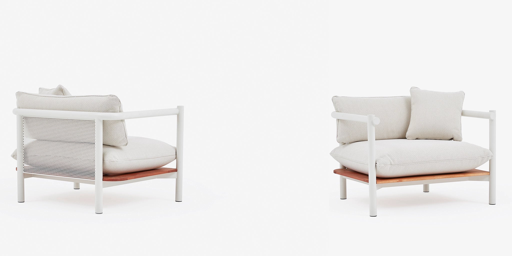 The Kin Outdoor Range brings a refined sense of comfort to open-air living, made for long summer days of unwinding and coming together. Layered foam densities and richly textured fabrics create a softness and ease rarely found in outdoor furniture. Each piece is grounded by a stainless-steel frame that wraps cleanly around perforated detailing and precise junctions - delivering a sculptural silhouette built to last in any outdoor setting.