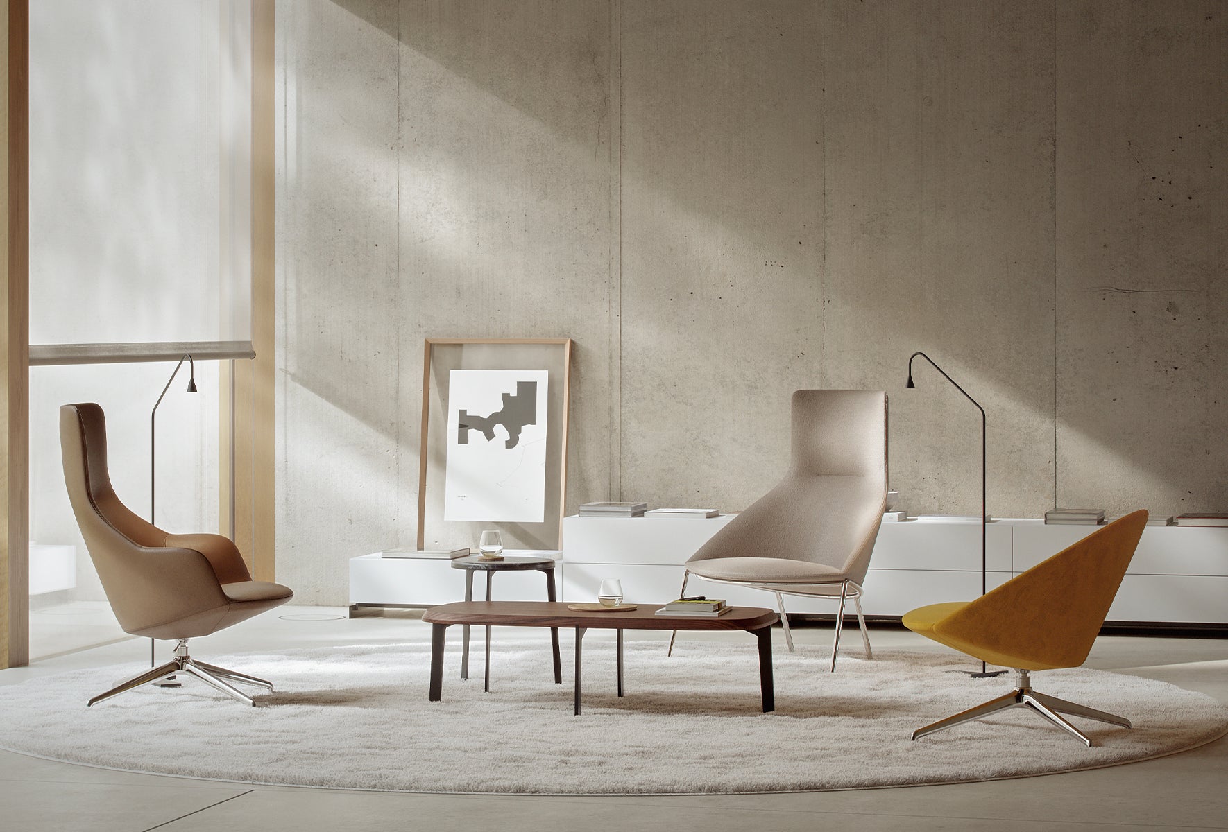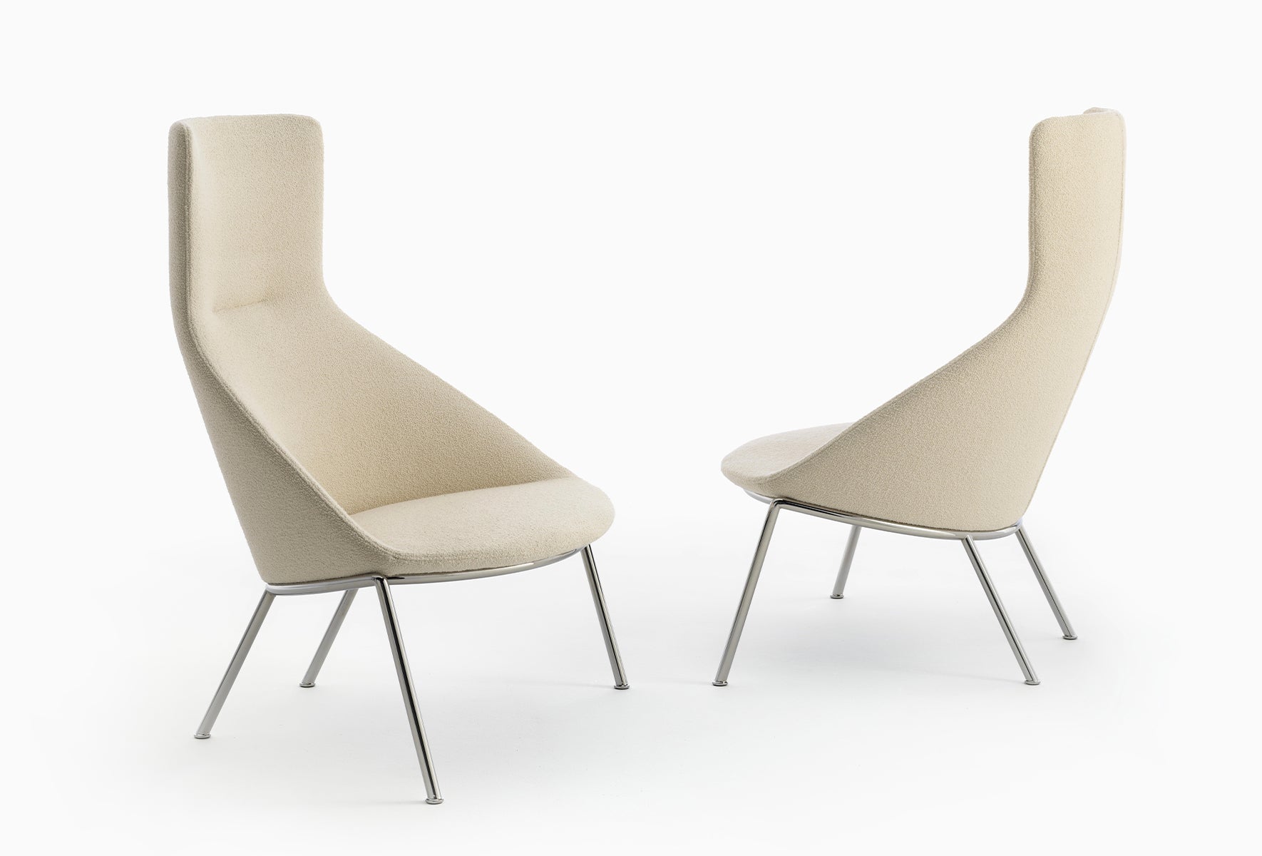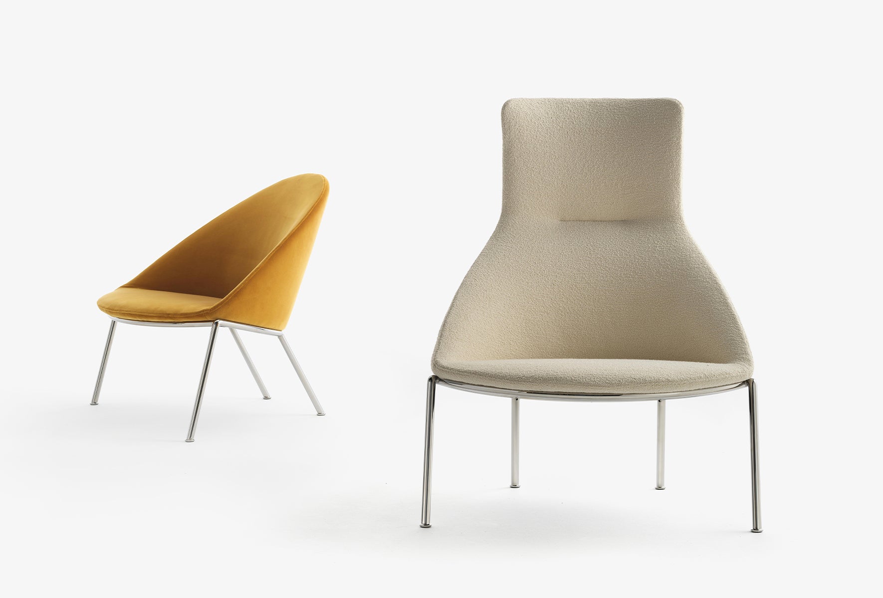 The flowing organic shape envelops the body and provides comfort within a small footprint. A responsive webbing seat is concealed within the formed foam and cradles the user.