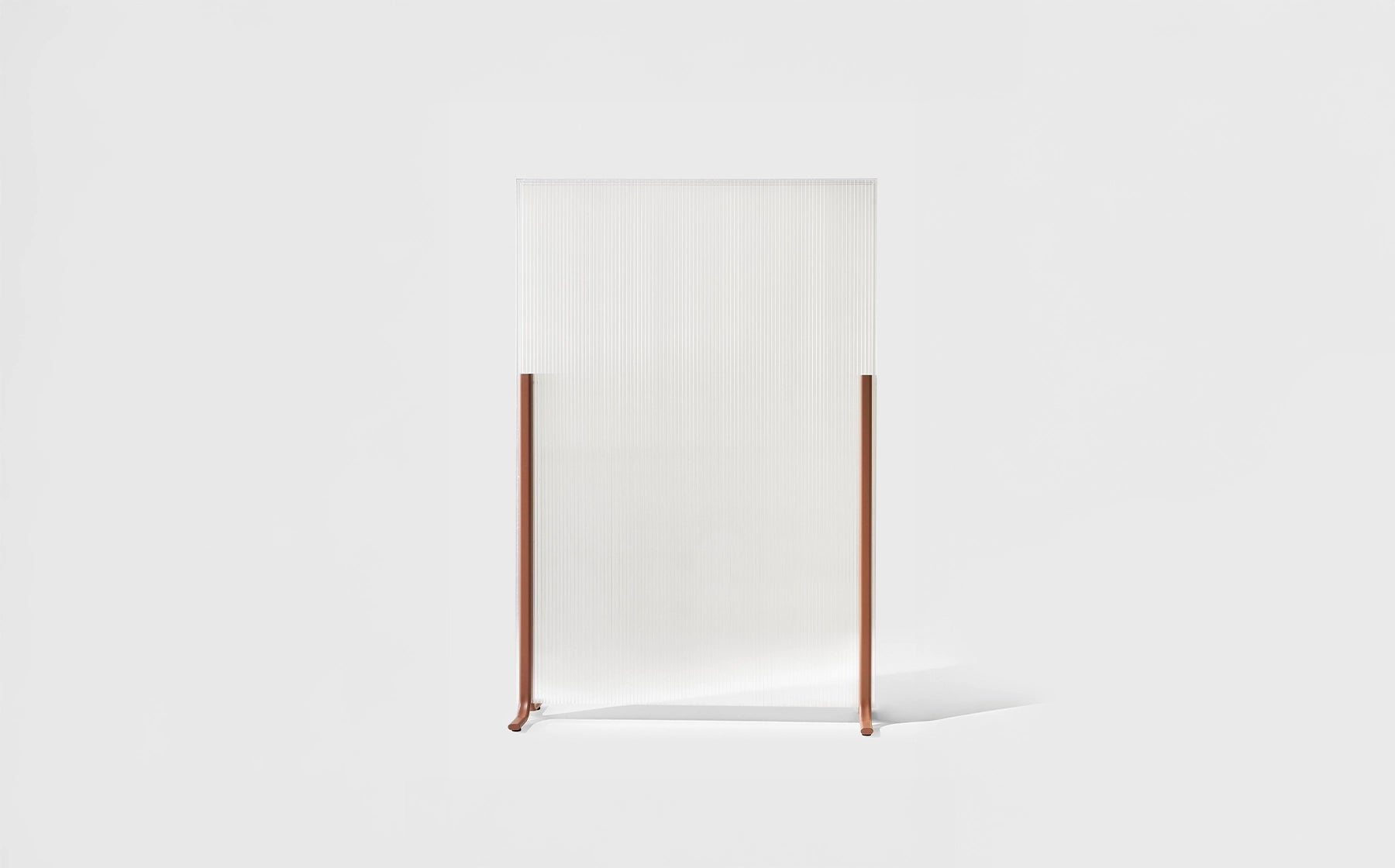 Hinoki features a sophisticated semitransparent polycarbonate panel set within a refined metal framework with a flat, freestanding base. Available either floor-mounted or on castors, the metal structure is powder coated in a selection of Manerba's exquisite lacquered finishes, allowing for harmonious chromatic coordination with other collections in the catalogue.