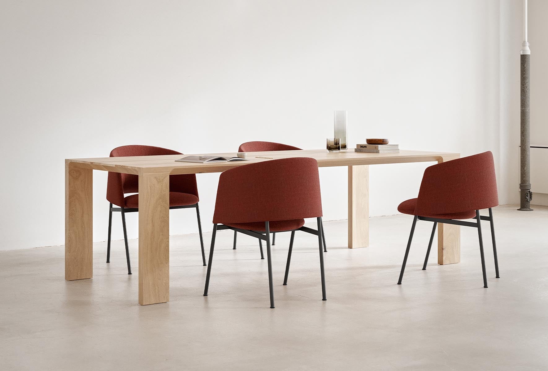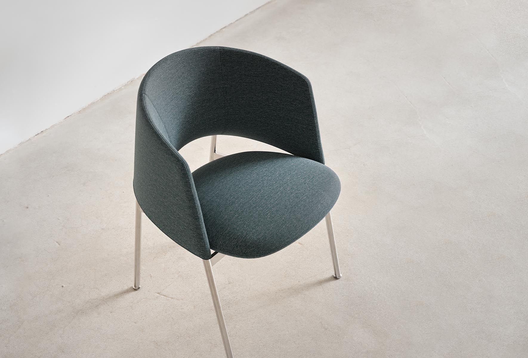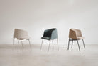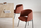Featuring the same silhouette as the Collar Lounge, the Collar Dining Chair provides warm comfort. With a metal base available in a variety of finishes, the Collar Dining Chair is available in all fabrics and leathers from the collection. The enveloping seat is perched on thin metal legs providing an elegant seat for the dining room.