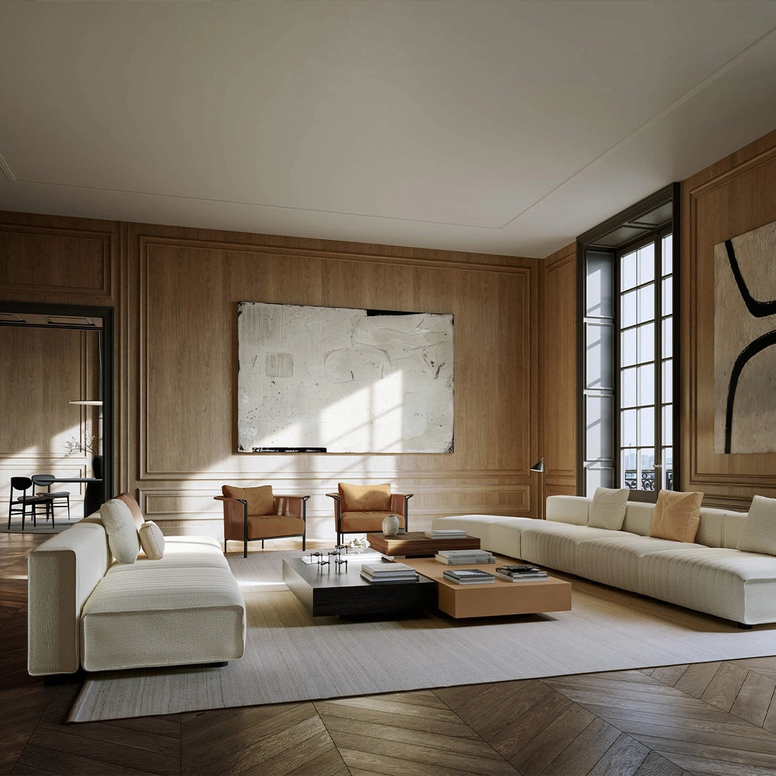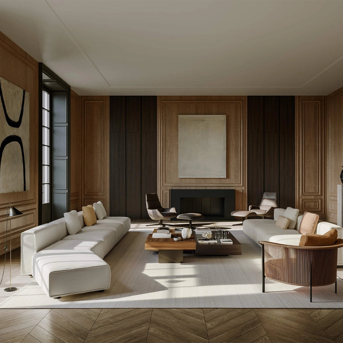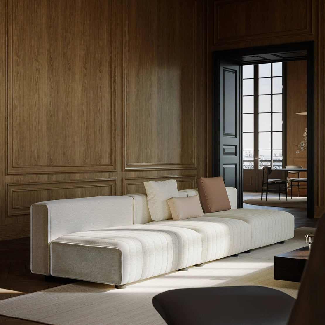 Upholstered in premium fabrics or leathers, the Niveaux invites both visual and tactile pleasure. Its generous proportions and plush padding create an inviting retreat, whether in a sophisticated living room, open-plan loft, or refined hospitality setting.
