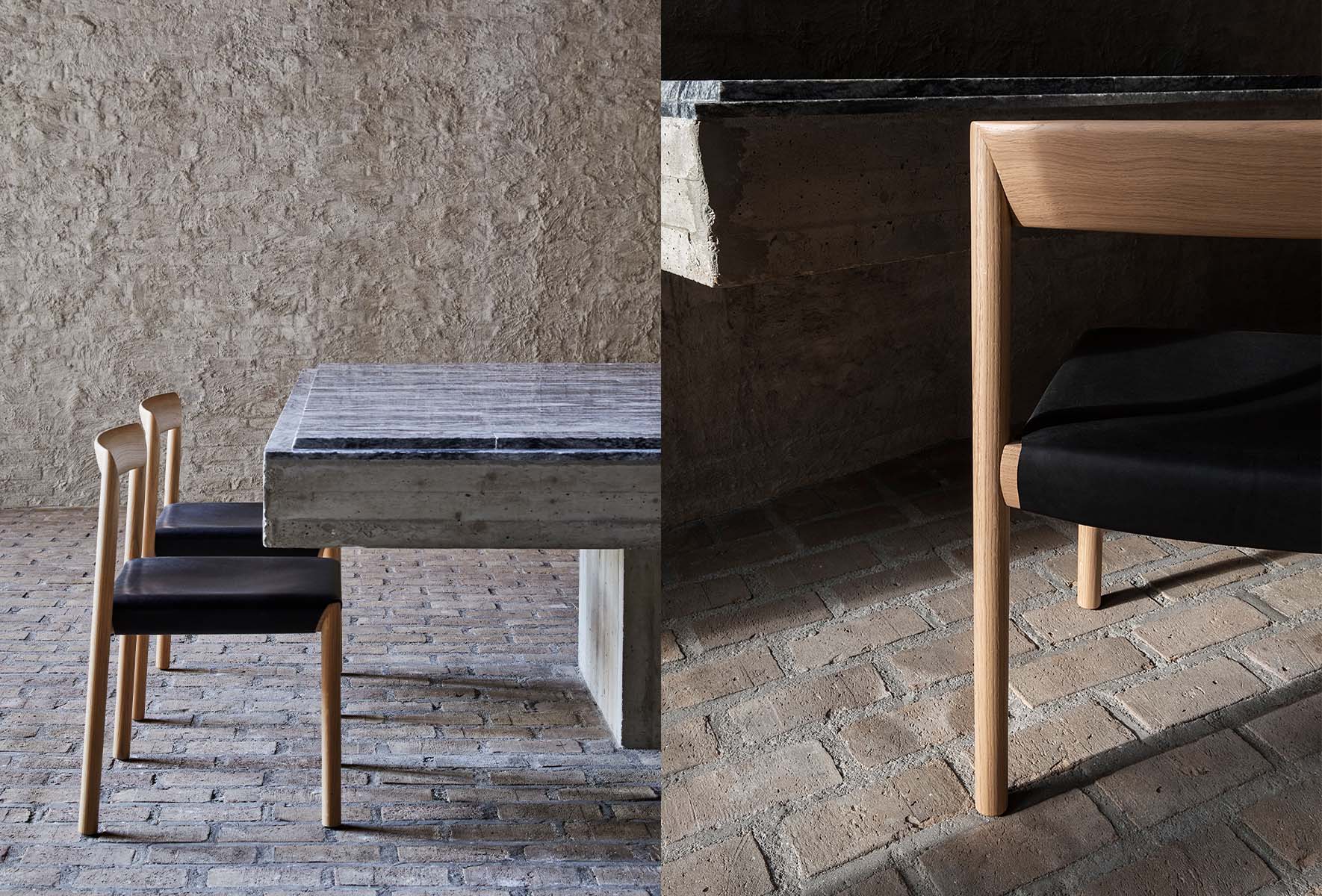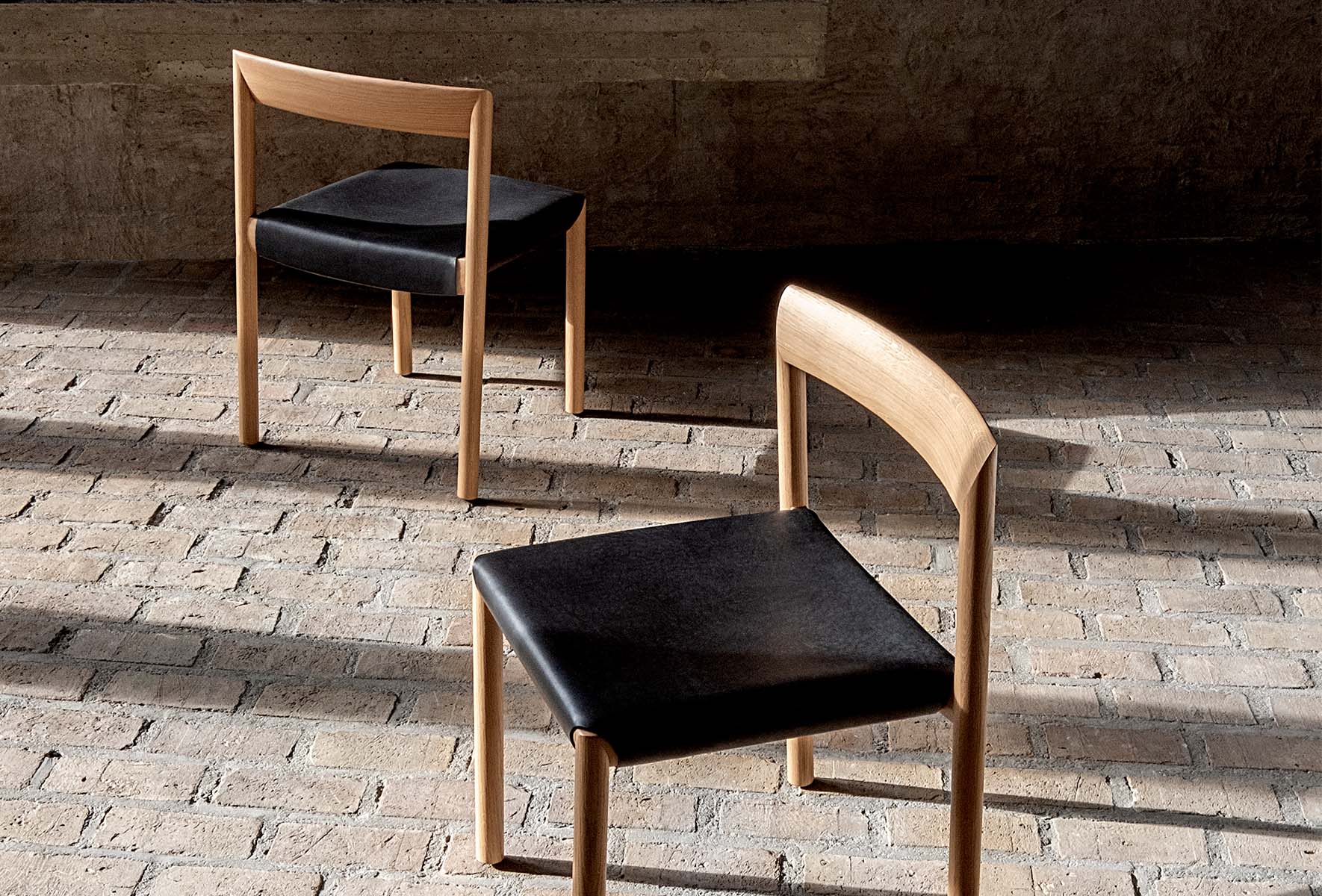 Solid wood frame - Ash / Black Ash / Oak / Walnut; upholstered seat - Fabric / Toscano Leather