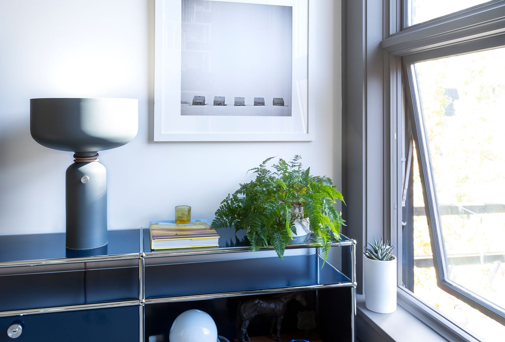 The Spotlight Volumes Table Lamp shows four unique spun aluminum shade profiles that range from wide to narrow, creating various distinct combinations. Its classic silhouette is complementary to any space as it expresses symmetry, balance, and proportionate form. Each lamp comes with an energy-efficient dimmable LED light bulb and glass globe.