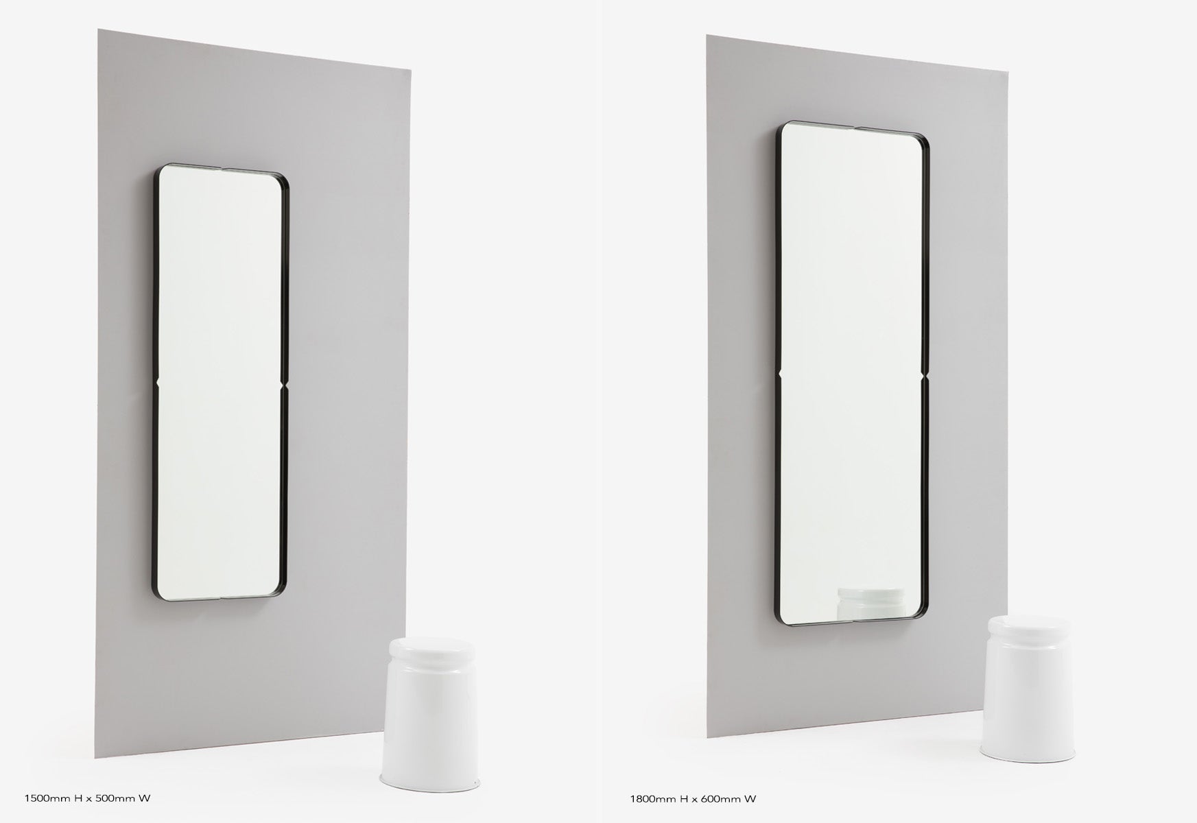 With two sizes to choose from, the Press Mirror will make a striking and useful addition to any bedroom, entryway or living area. Perfectly suited for commercial or retail spaces.
