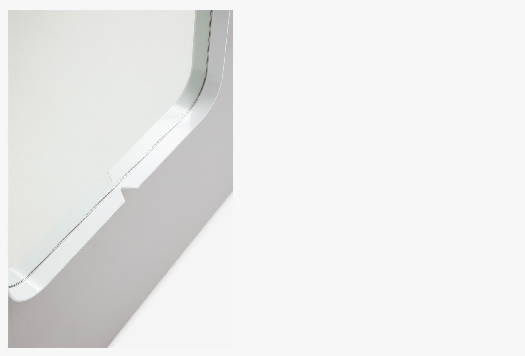 Inspired by details of a compass, the Press Mirror features precisely cut triangles at the North, South, East and West points of the mirror frame. A subtle and considered detail that elegantly reflects itself in the polished mirror surface.