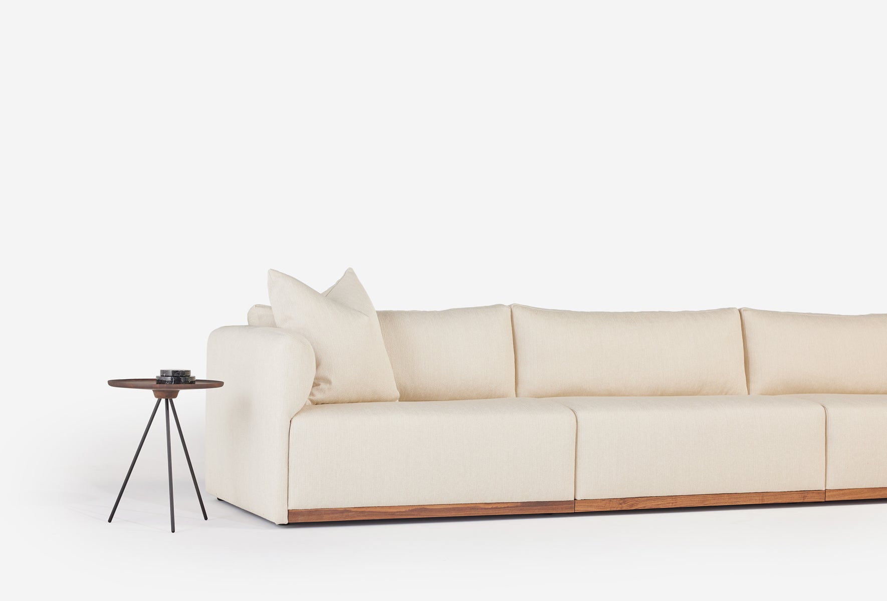The Copen Sofa is a modular sofa, with unlimited potential. Functionality, comfortability and distinction were core traits that captivated Tim during the design process. These attributes manifest themselves in every considered detail, from the feather and foam upholstery, solid Walnut or Oak trim, to the juxtaposition between linear and round.