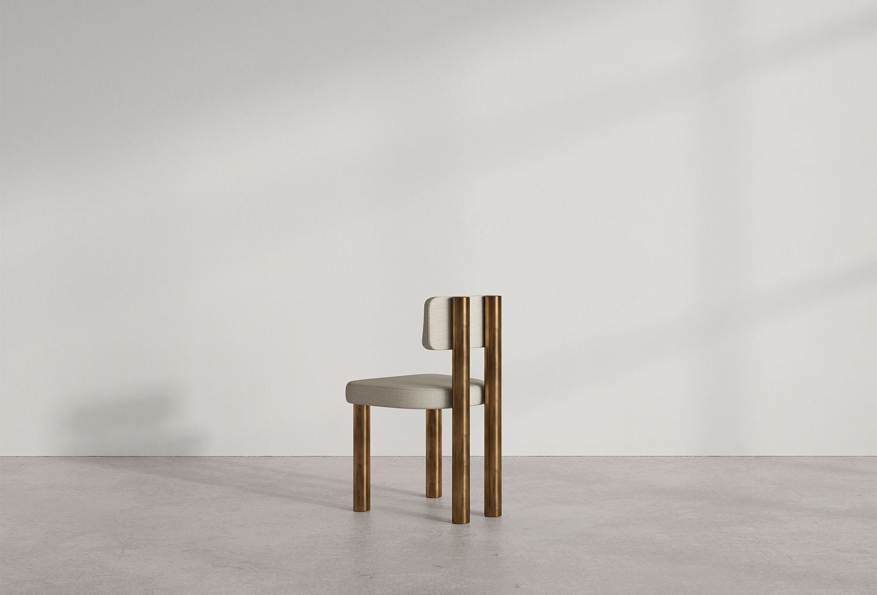 The Pivot Chair focuses on bold, sculptural forms whilst retaining an elegant and refined aesthetic. Devoid of any visible bracing or fixings creates a visually clean silhouette. The distinct tubular legs establishes a solid presence to any dining room or bespoke commercial space.