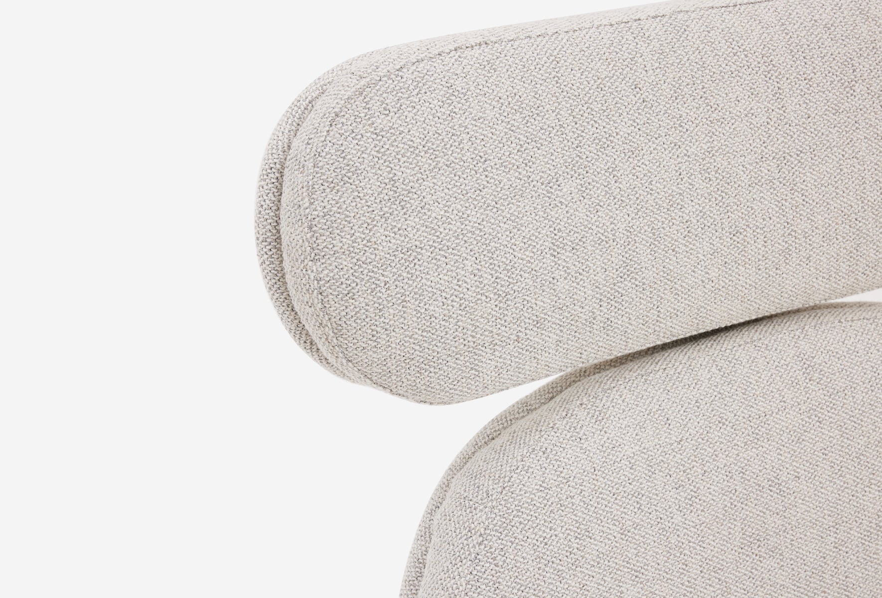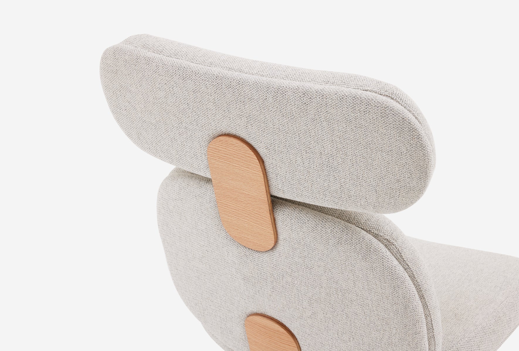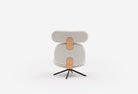 Internal Plywood Shells, Oak veneer on Birch Plywood back detail, Foam - Organic Latex, Organic wool fill,  Swivel Base - Powder coated Steel
