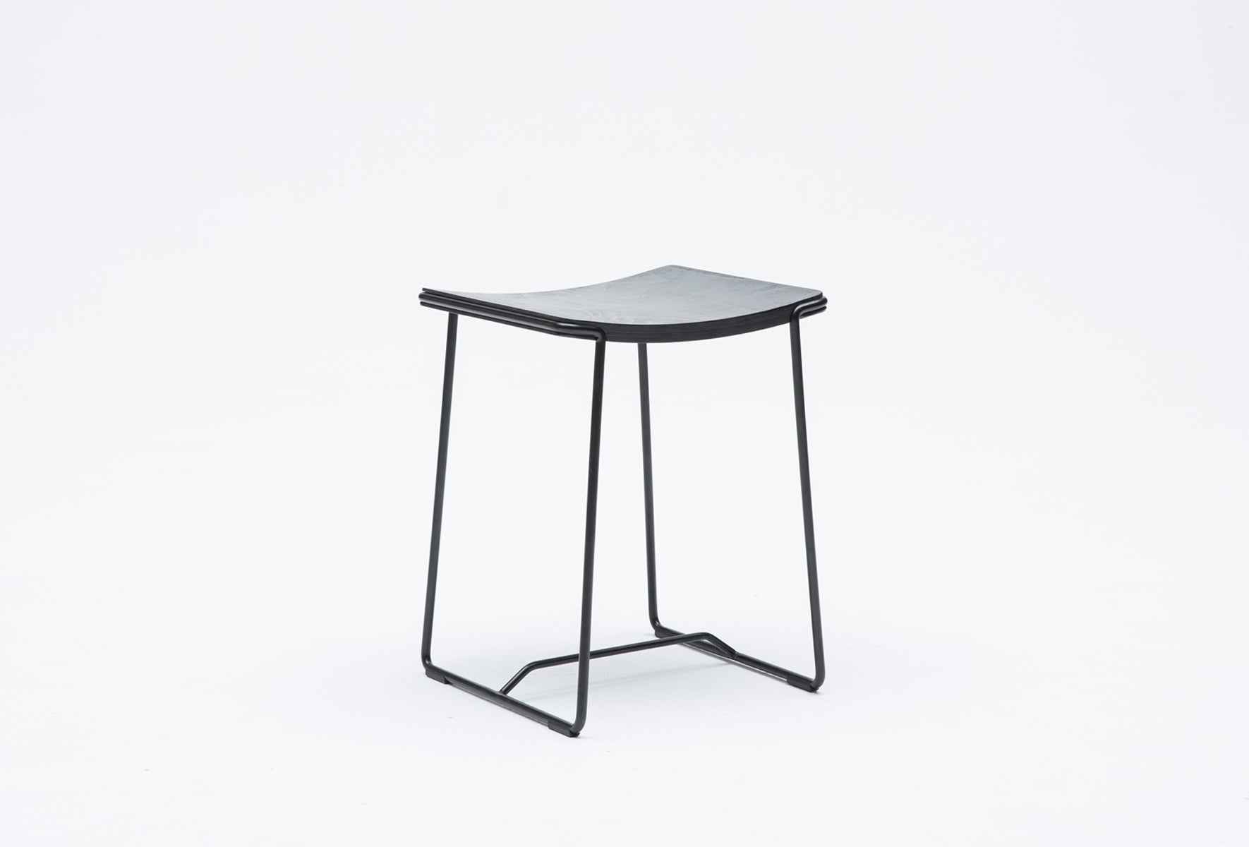 The Wrap Stools are a sophisticated design constructed from 12mm steel rod with a European Beech plywood seat. The harmonic relationship between wood and metal is evident in the way the edge of the plywood seat embraces the bent steel, as well as the steel wrapping around the front and back of the seat.