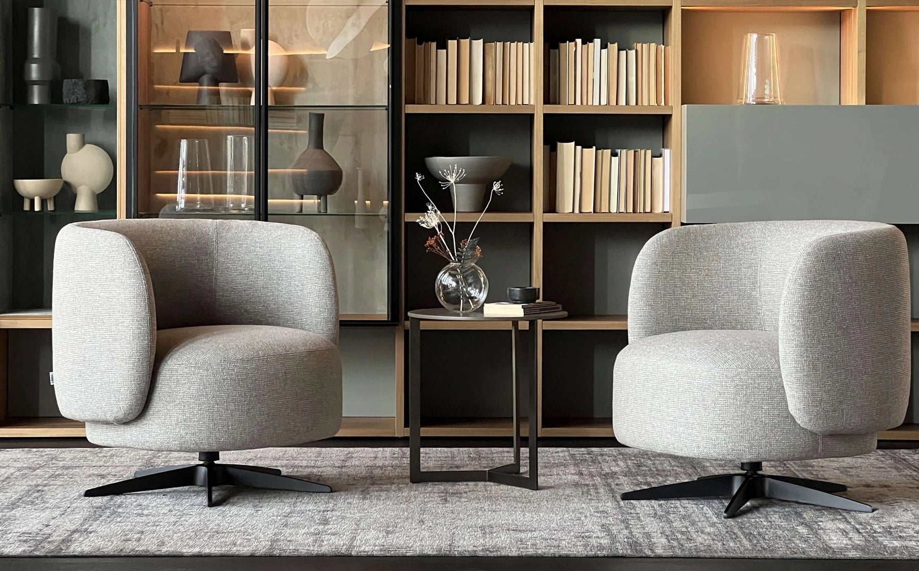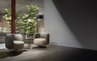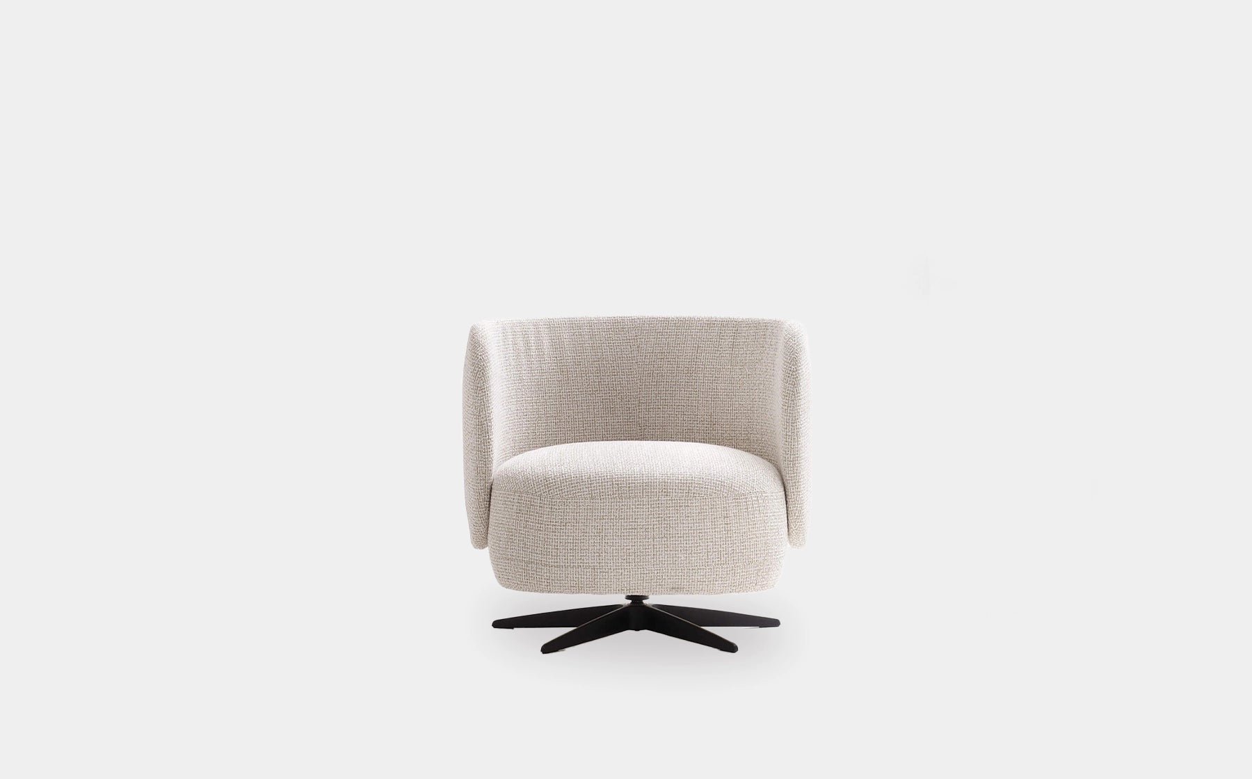 Defined by its compact footprint, high backrest, and striking swivel base in die-cast aluminium, the Miki armchair introduces both visual impact and practical versatility. Its 360° swivel mechanism adds movement and adaptability, making it ideal for lounges, reading corners, or contemporary workspaces.