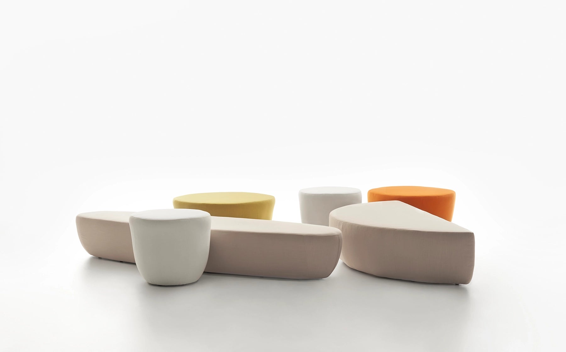 Distinguished by their signature flared bases and exquisite hand-finished seams, these pieces transcend mere furniture to become sculptural statements. The artful interplay of form and colour invites endless creative arrangements—from collaborative workspaces to sophisticated living environments and elegant open-concept settings.