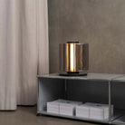 The Column Light by features multiple vertical glass cylinders, each with fluted surfaces that are available in two colour options: a smokey carbon, or frosted ivory.