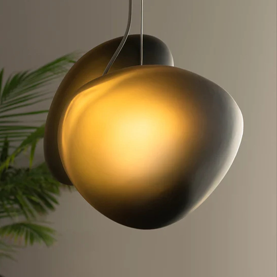 The Pebble series celebrates the primordial beauty of stones. Enhancing their simple yet sculptural form through translucency, two glass-blown shapes enter into dialogue. The result is a seemingly bespoke pendant fixture—endlessly evolving in shape when viewed from different perspectives.