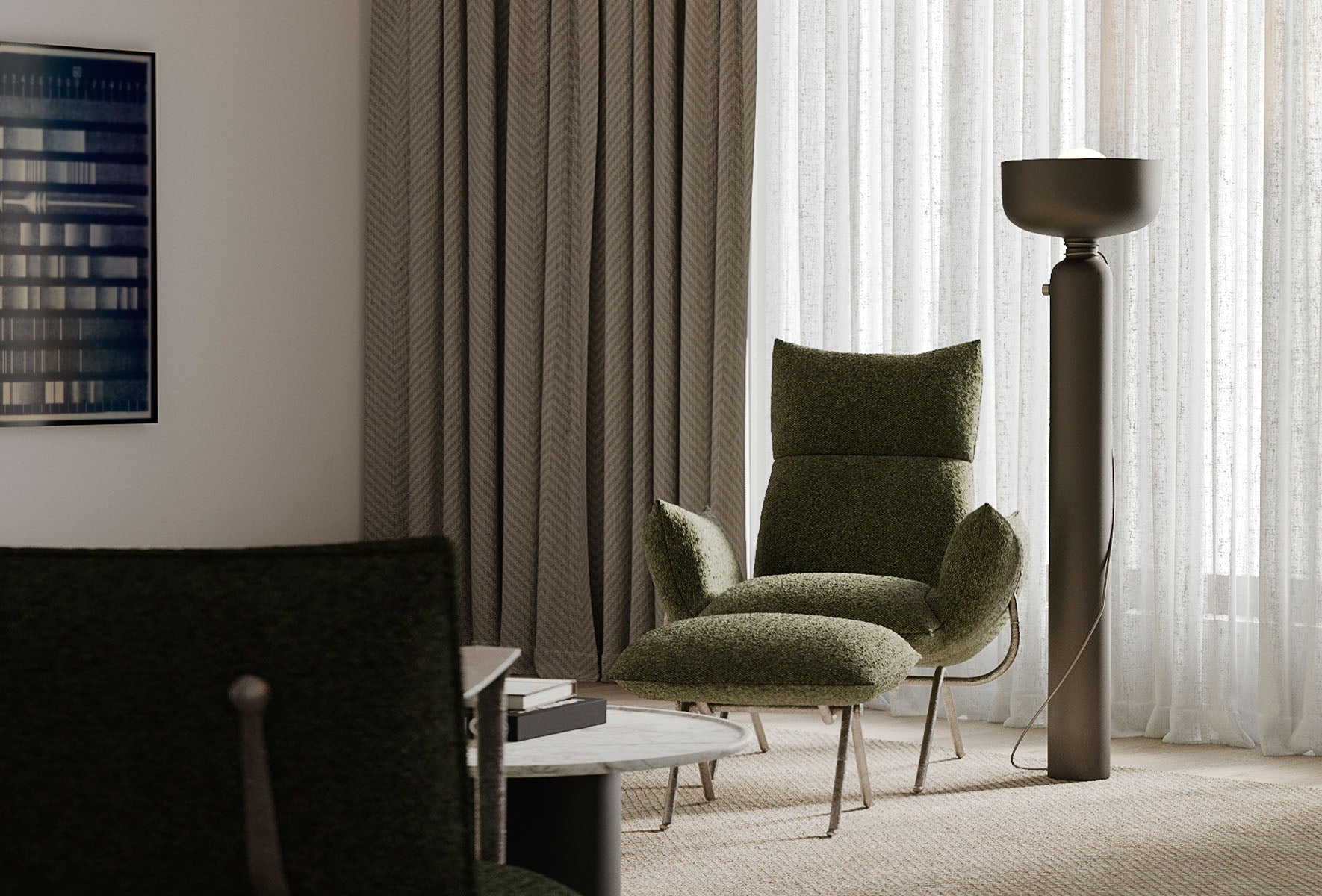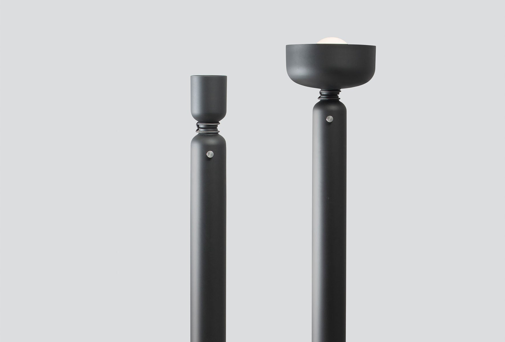 Floor Lamp: The Spotlight Volumes Floor Lamp shows five unique spun aluminum shade profiles that range from wide to narrow, creating various distinct combinations. Its classic silhouette is complementary to any space as it expresses symmetry, balance, and proportionate form. Each lamp comes with an energy-efficient dimmable LED light bulb and glass globe.