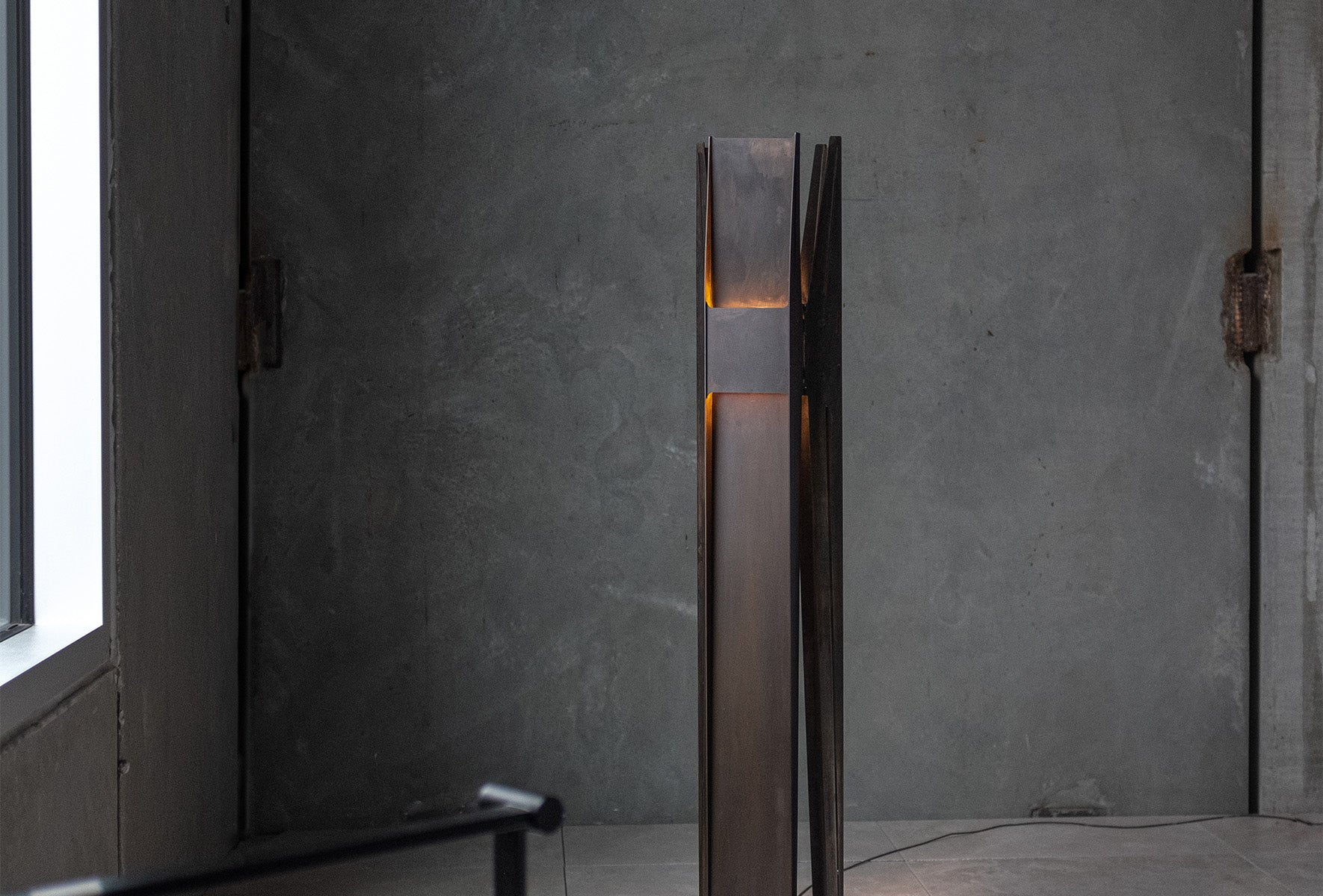Cut from precise paths, several panels are fitted together to create a slender rectilinear section known as the Vector, which directs light to wash down its inner sloped surfaces. In suspension, light pours into a hollow centre of the Vector and onto the inner and outer faces bidirectionally.