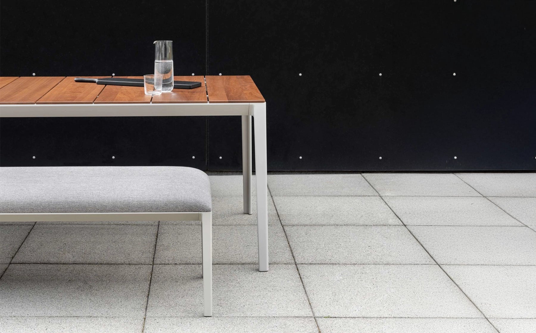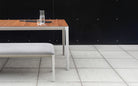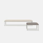 The adaptive Able bench serves as versatile seating that can be paired with the series tables or sofas, yet it also makes a striking statement on its own. Crafted from untreated outdoor-grade solid teak, the bench allows the natural beauty of the wood to evolve over time, adding character with each passing season. Built for durability, the bench features powder-coated die-cast aluminum legs with aluminum extrusion rails.
