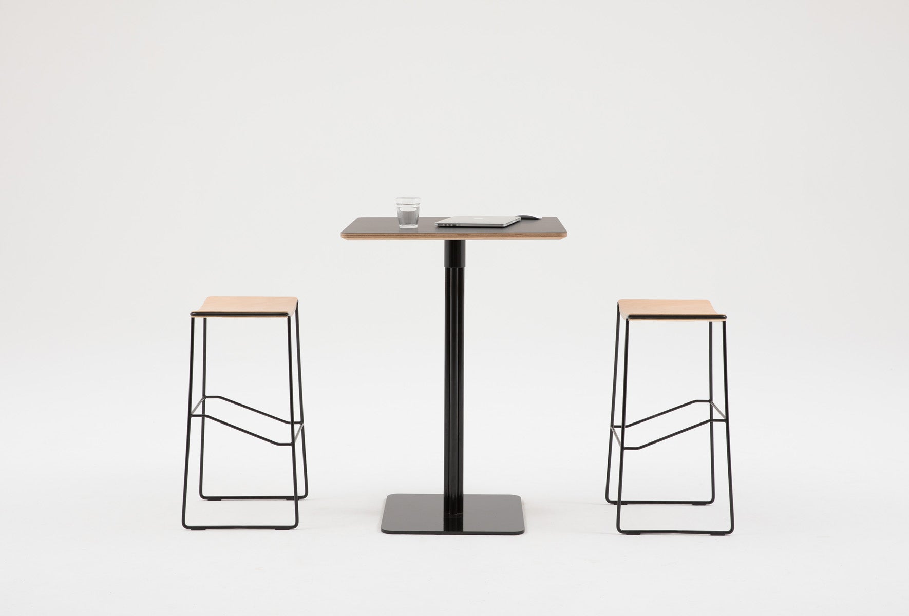 The square base Chase Bar Leaner is defined by it's unique pedestal 4 piece leg design. The central leg, constructed with four steel tubes, creates a strong detail both visually and structurally.