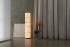 The faceted surface of the Column mimics the fluting used on buildings and temples to create a sense of rhythm, which softly diffuses the light as it radiates into the space.