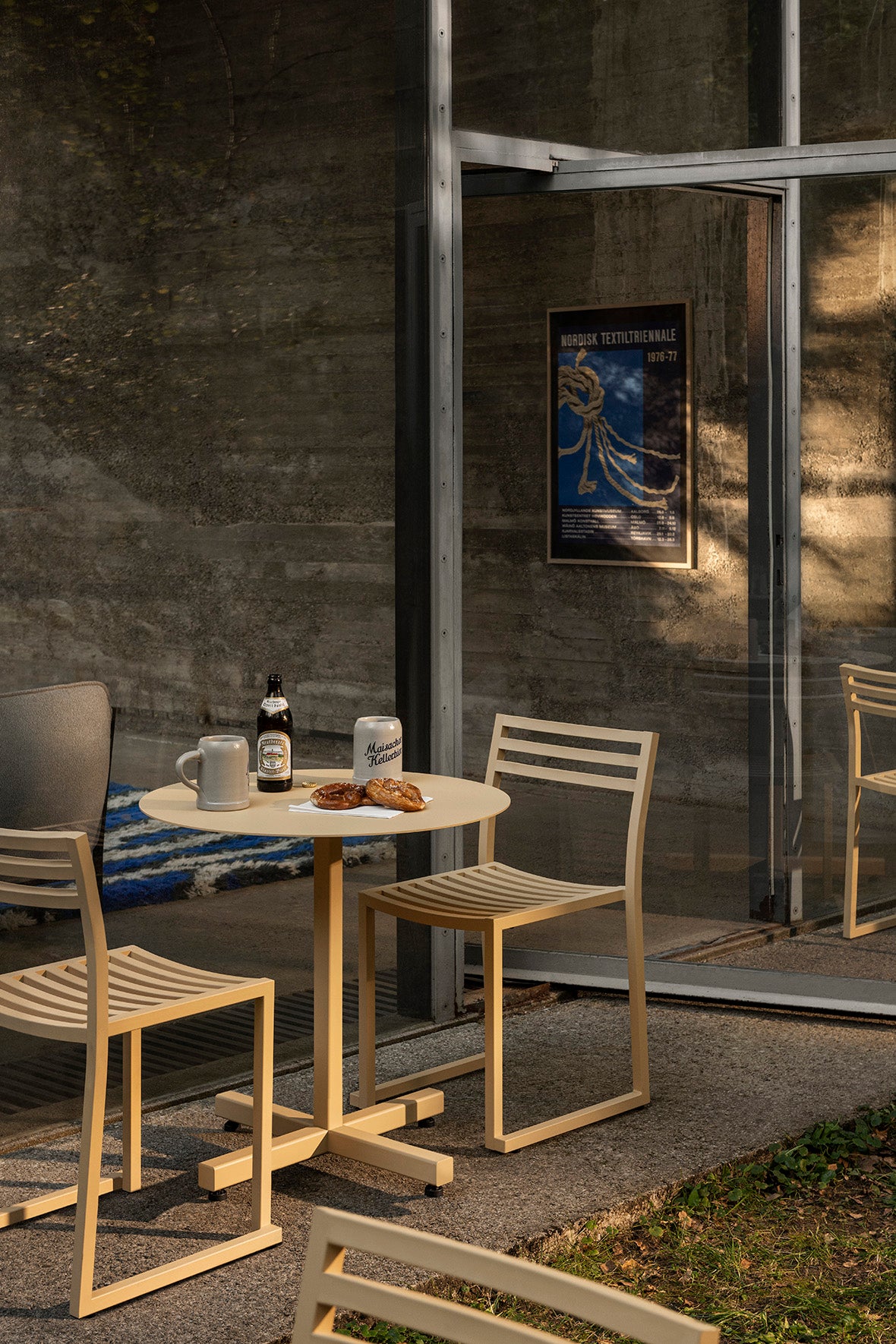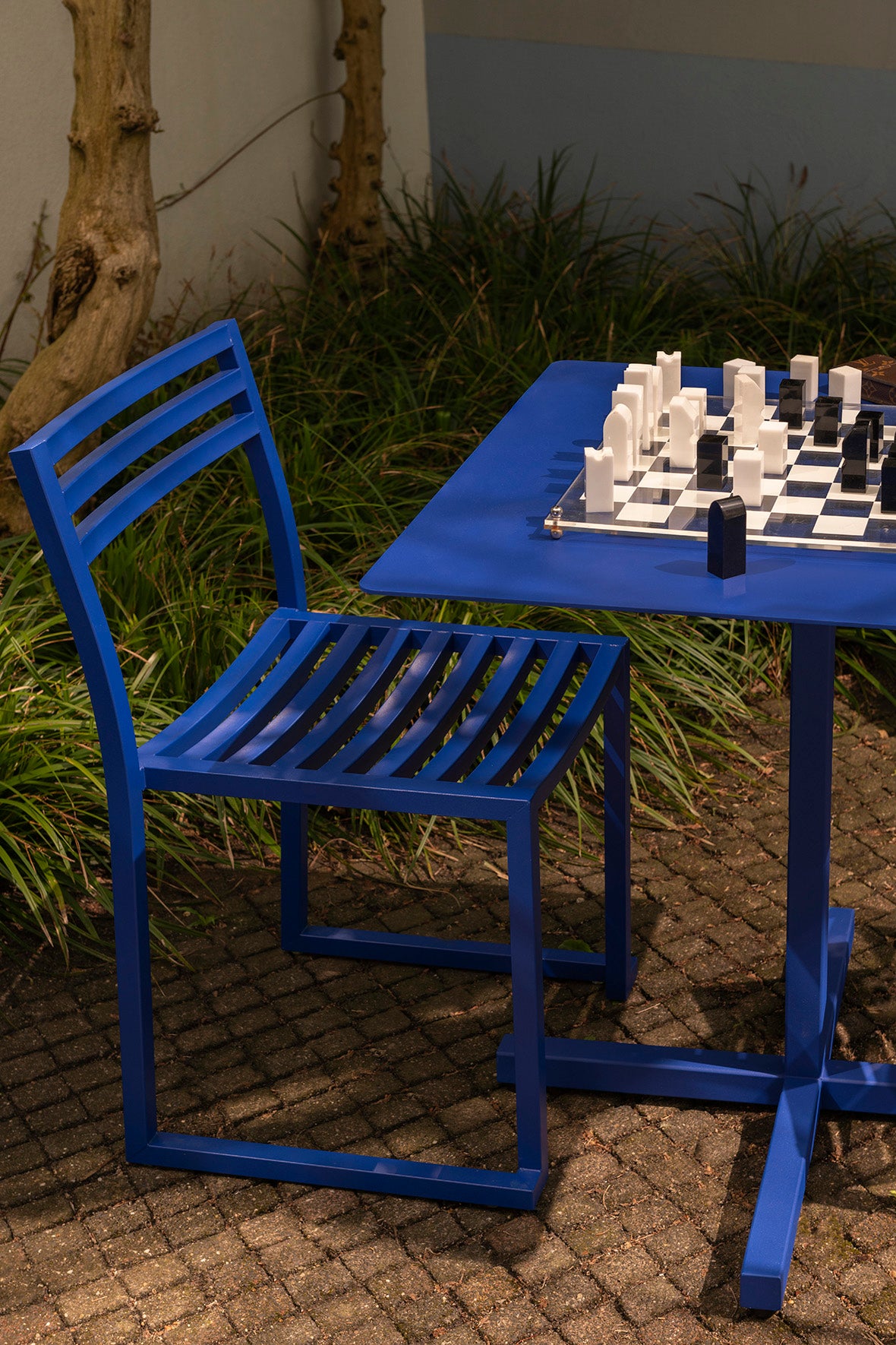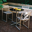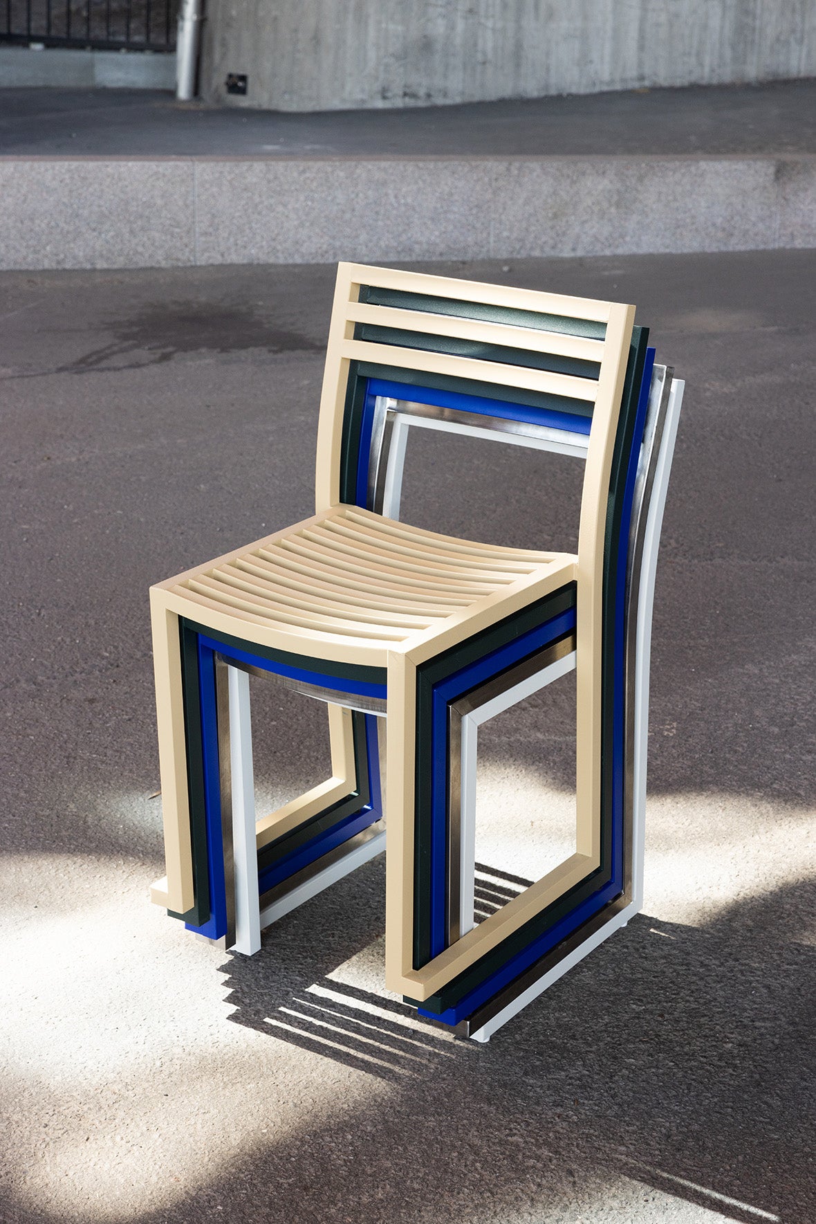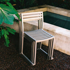 The Chop Chair by Philippe Malouin is an evergreen design conceived for use in a range of public and private outdoor spaces. Beautifully proportioned, with subtle curvatures, it is intentionally simple, in both construction and style. Chop reimagines a classic slatted-chair archetype to create a silhouette that is immediately recognizable, yet pleasingly unknown. The idea for the design was influenced by Malouin’s work in the art world, where he often utilizes hand-led industrial techniques to develop striking forms that accentuate the object's materiality. The Chop collection is cut, bent and welded from durable stainless steel, and is available in a raw, sandblasted or powder-coated colored finish. A design for all seasons, Chop is correctly weighted to resist wind, while still being light enough to move around and stack with ease.