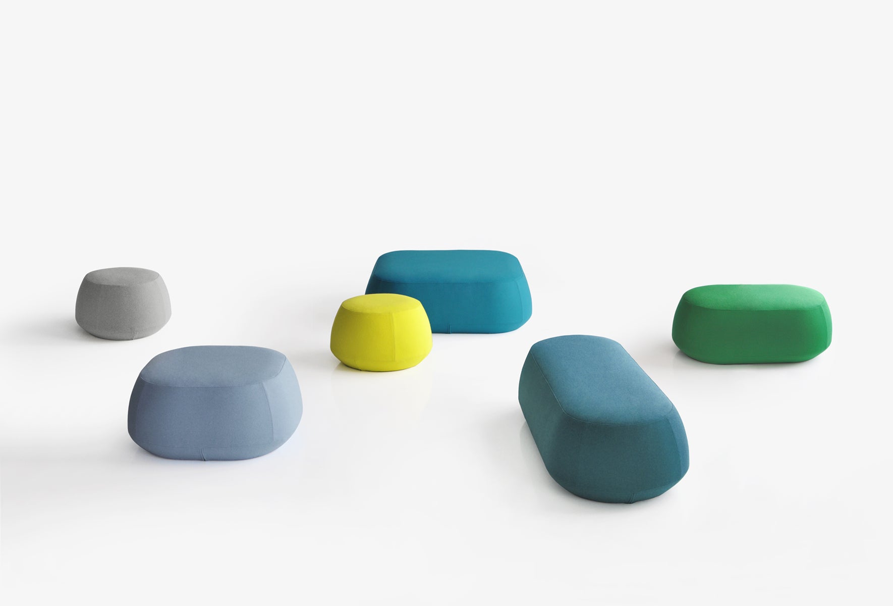 The Ile series of ottomans share the same undercut design prominent on the U Turn chair series. This detail is not only a visual feature that lightens the look of the piece it also provides foot space making sitting down and standing up much easier. The Ile series come in several different shapes and sizes and feature a light core construction capped with layers of engineered foam. Covers are attached by Velcro and are removable for easy cleaning or replacement.