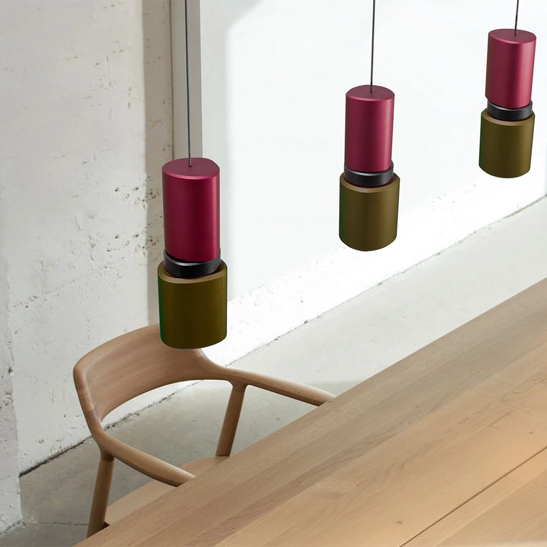 The Lobe celebrates the poetry of mechanics, articulating the rotational difference of three irregular, ovular-shaped cylinders. As the cylinders are stacked and offset from one another, they each appear to convey angular momentum arriving at a halt; the resulting composition in each fixture is ever-changing when viewed from different perspectives.