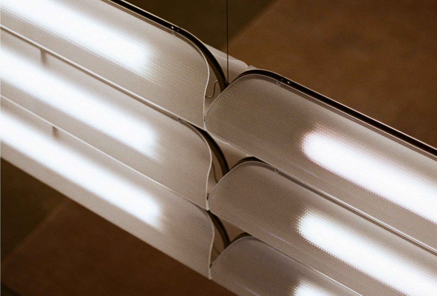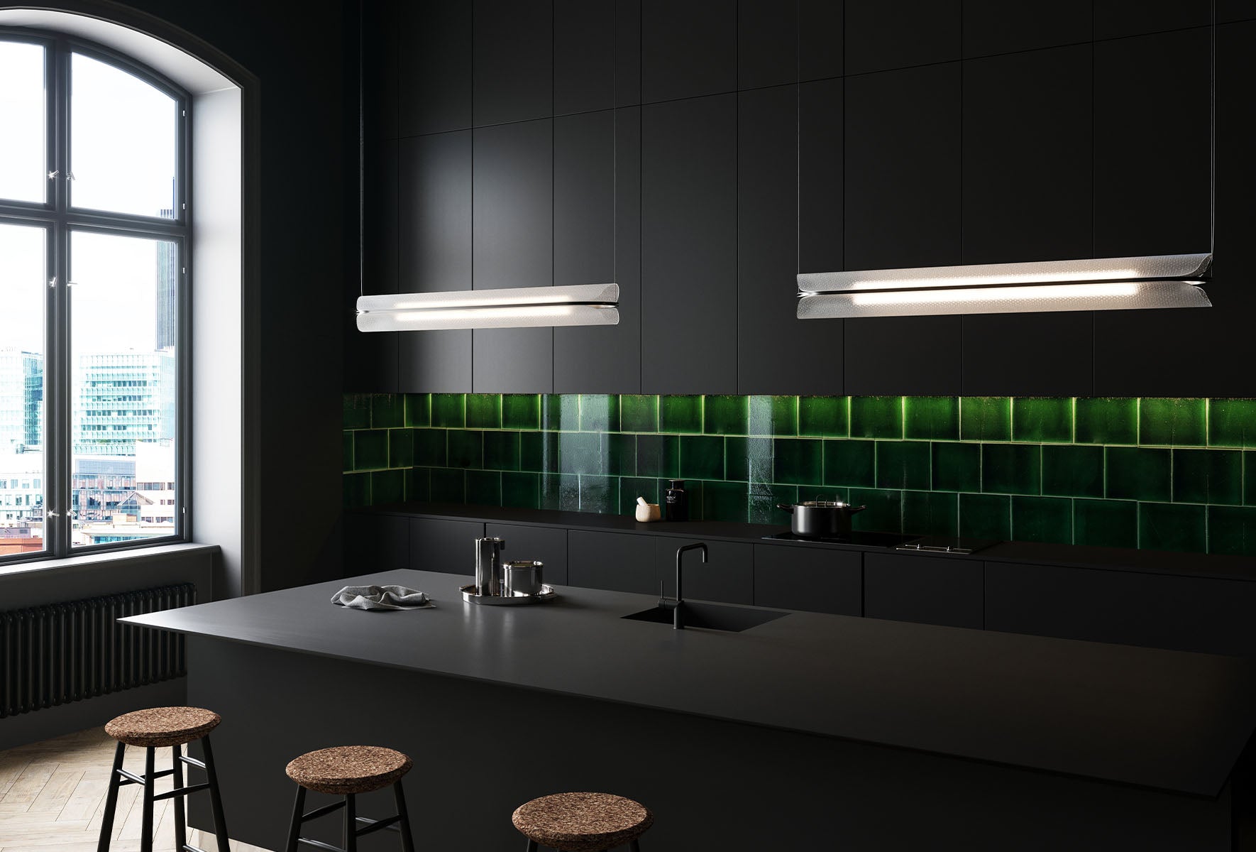 Vale optimises functionality through its multidirectional luminescence while diffusing soft ambient light. The series crystallises light in its transitional state. The undulating profile of the lens translates emitted light to a striking gradient.